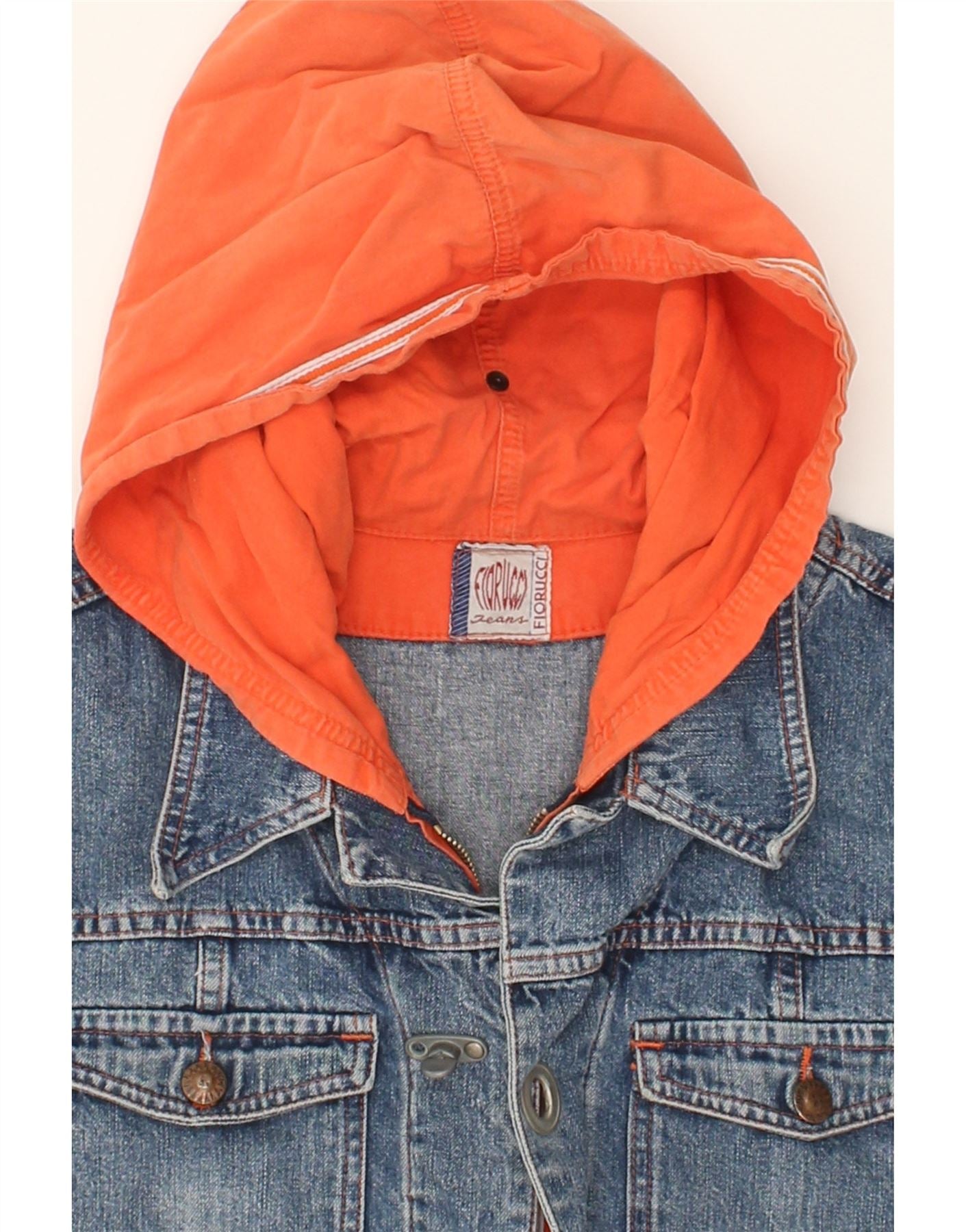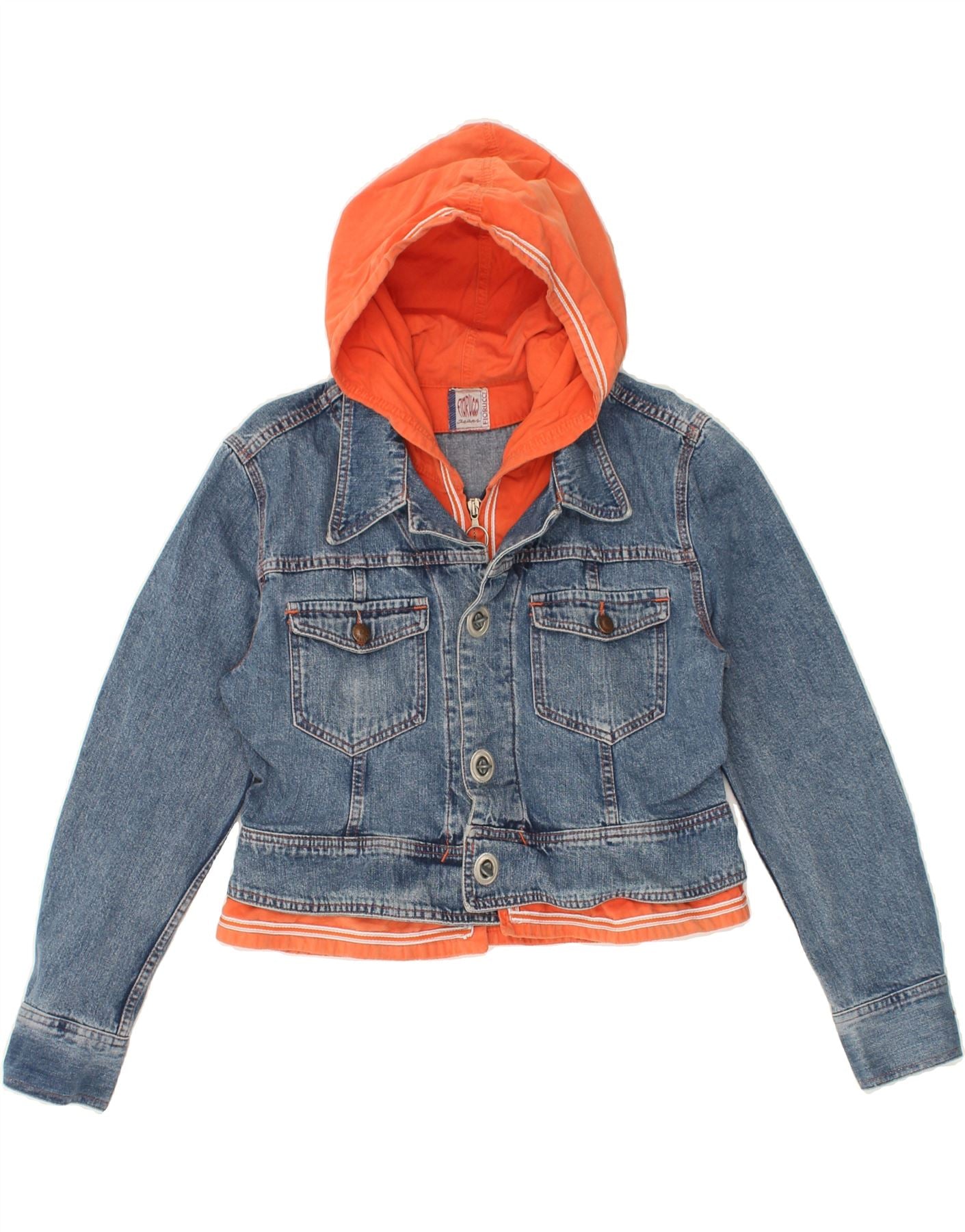 FIORUCCI Girls Crop Hooded Denim Jacket 14-15 Years Blue Colourblock