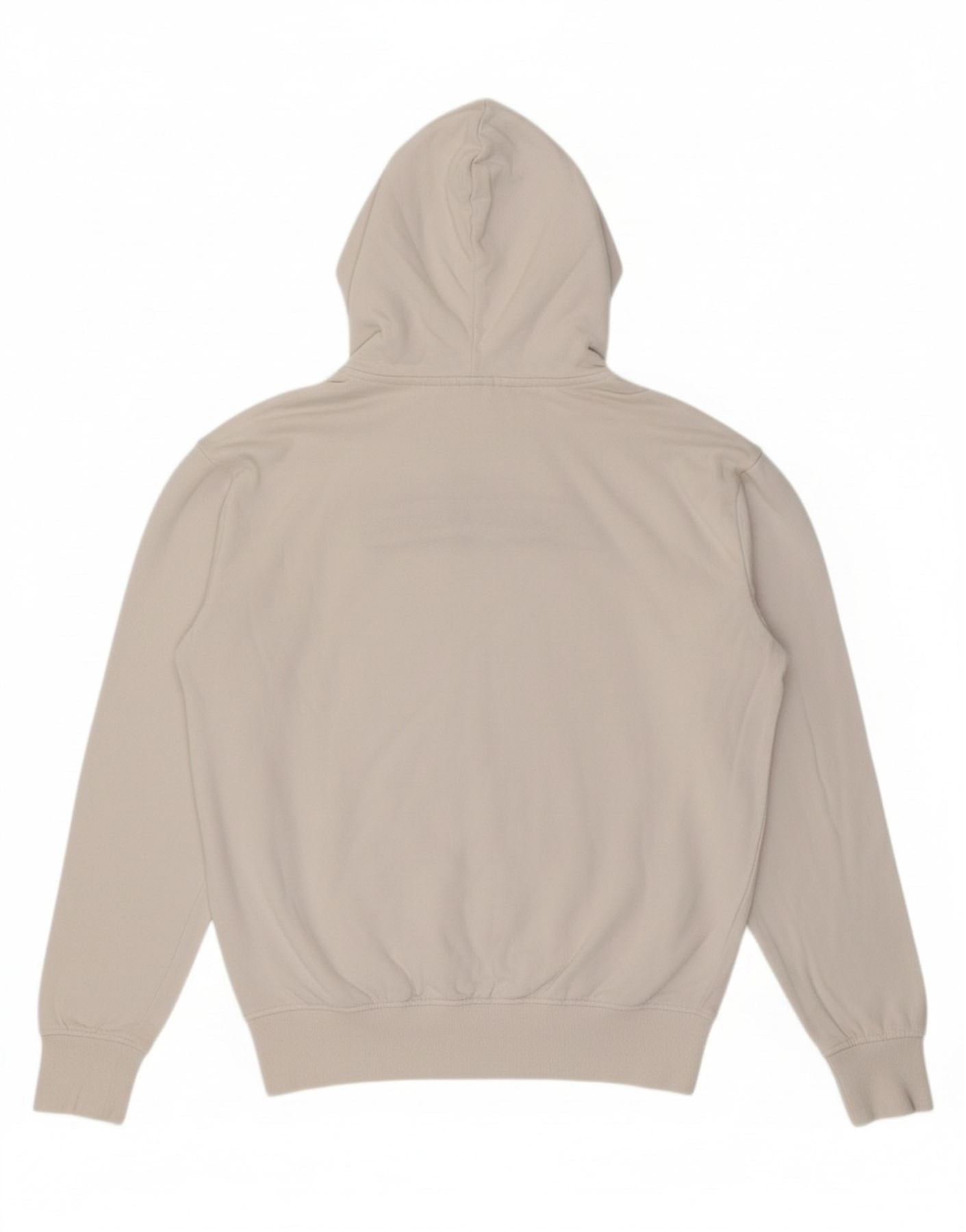 - AI Condition: Pre-owned | grade: Moderate | location: Lower back of the garment | type: Stains | grade: Minor | location: Lower front of the garment, right side, above the pocket | type: Stains | grade: Minor | location: Lower front of the garment, left side, above the pocket | type: Stains | grade: Moderate | location: General fabric wear, pilling, and slight dullness throughout the garment, especially noticeable on cuffs, hem, and hood edges | type: Visible wear | grade: Minor | location: Slight yellowing/dullness around the hood opening | type: Discoloration