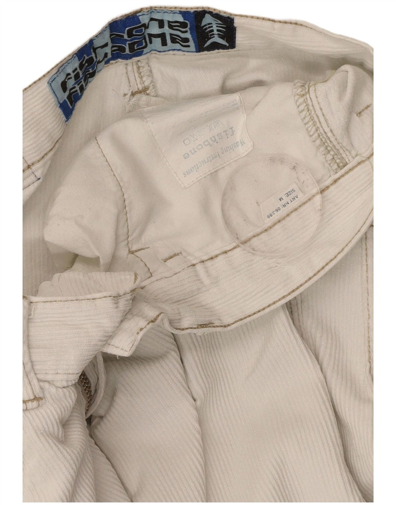 FISHBONE Mens Straight Cargo Corduroy Trousers Medium W30 L28 White Cotton