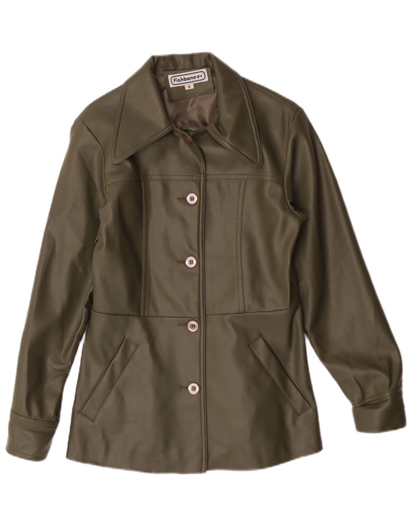 FISHBONE Chaqueta de piel sintética para mujer UK 10 Small Green Poliuretano