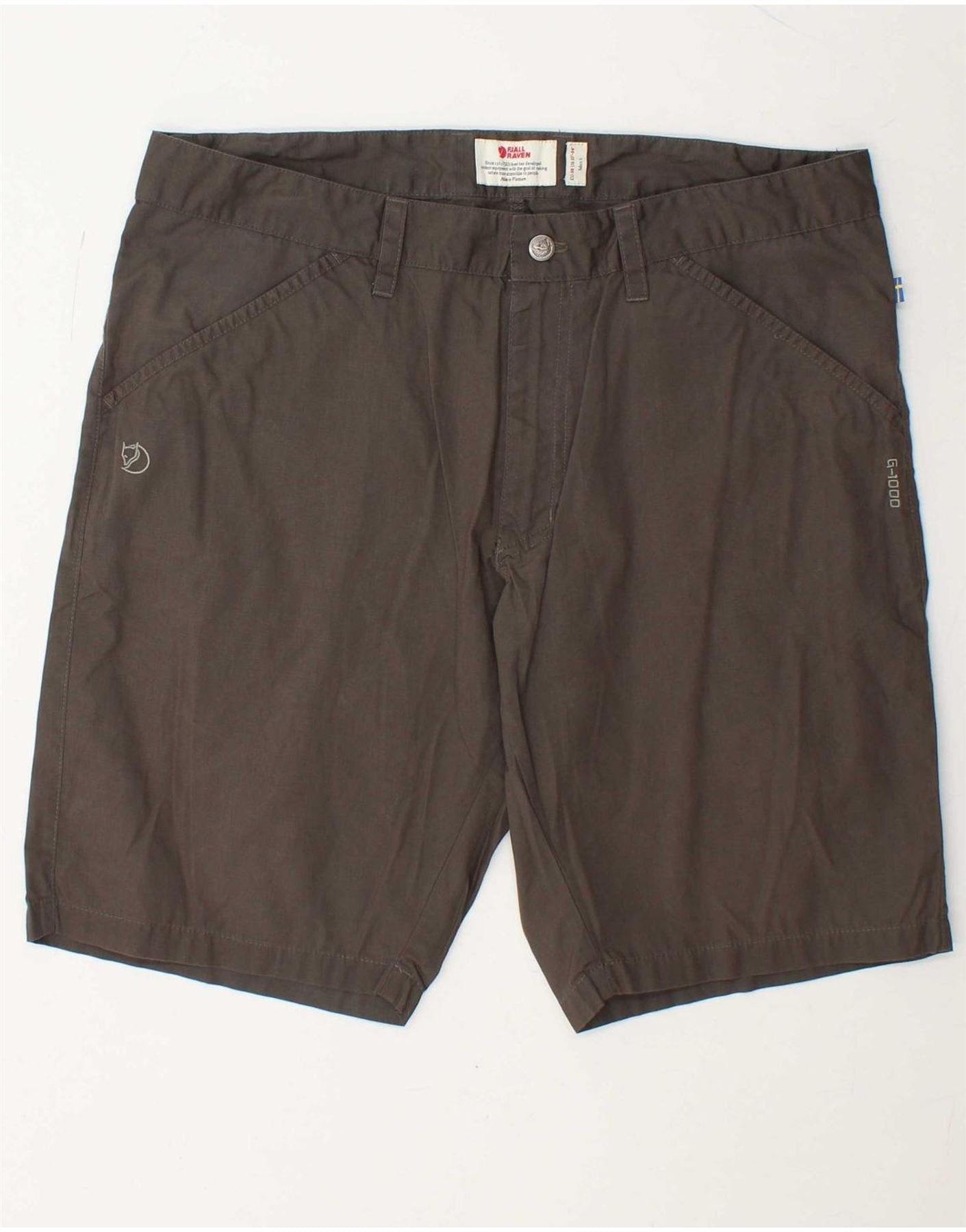 - AI Description: These Fjall Raven men's casual shorts are crafted from a durable brown woven fabric. They feature a classic regular fit, ensuring comfort and ease of movement. A robust button closure secures the waistline. Practical pockets offer essential utility for carrying small items. The design embodies timeless, classic style, perfect for everyday wear and outdoor adventures.