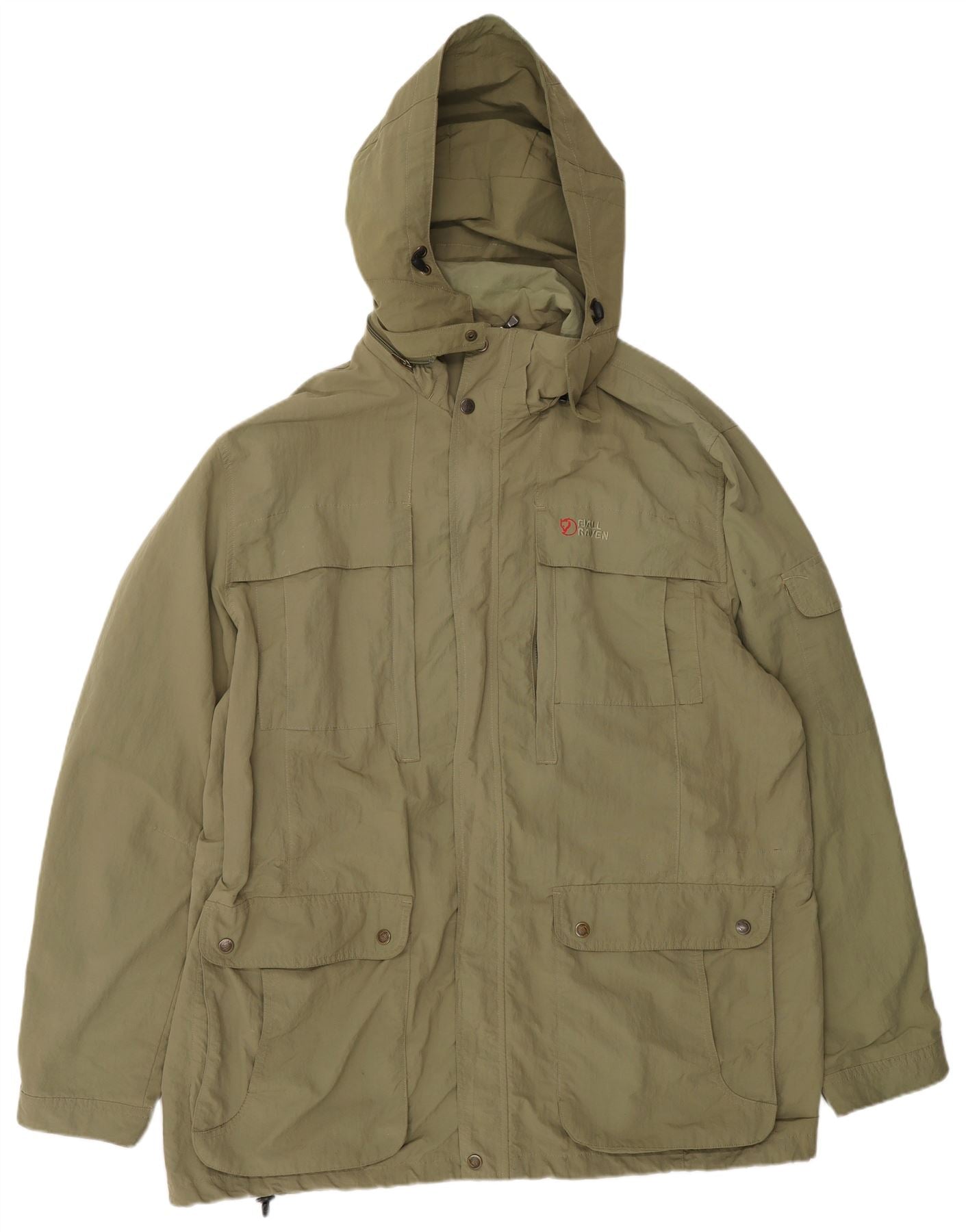 FJALL RAVEN Mens Hooded Windbreaker Jacket UK 44 2XL Khaki Polyamide