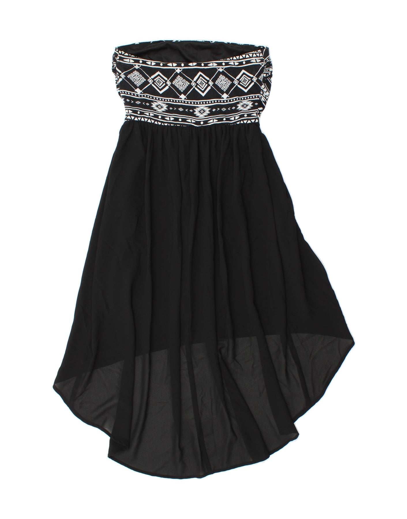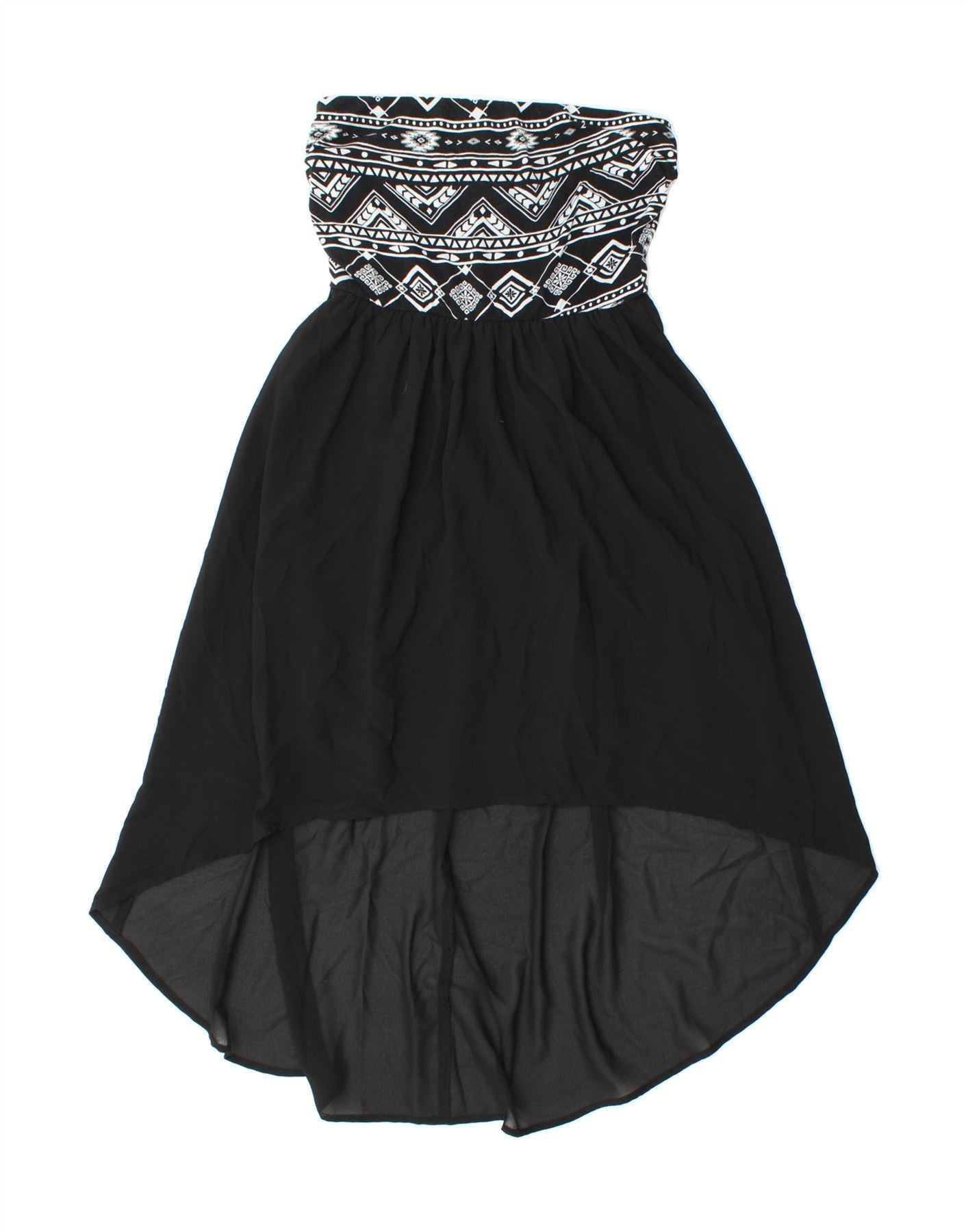 FOREVER 21 Womens Strapless Dress UK 8 Small Black Geometric Rayon