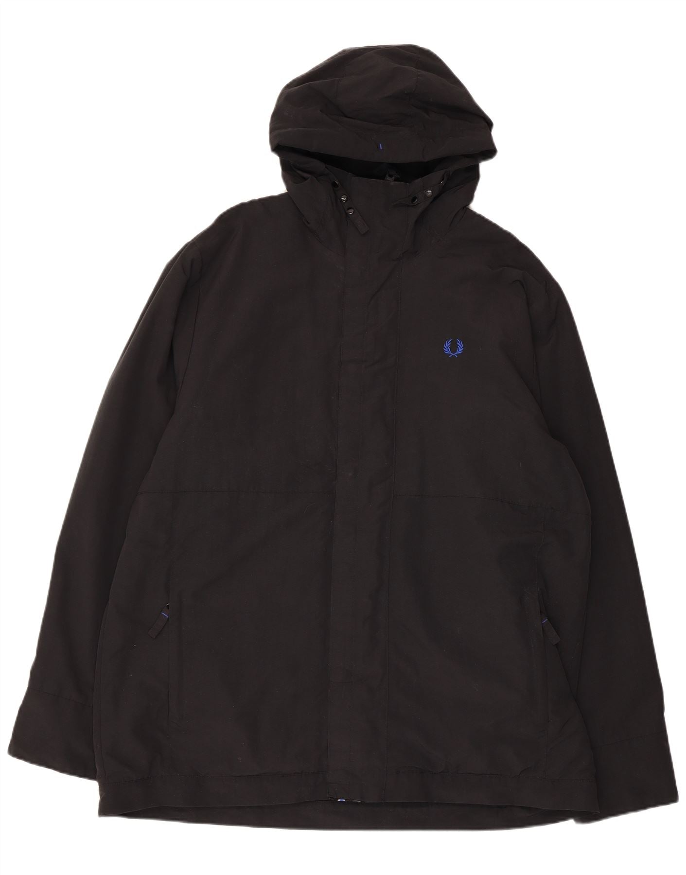 FRED PERRY Chaqueta cortavientos con capucha para hombre UK 42 XL Poliéster negro