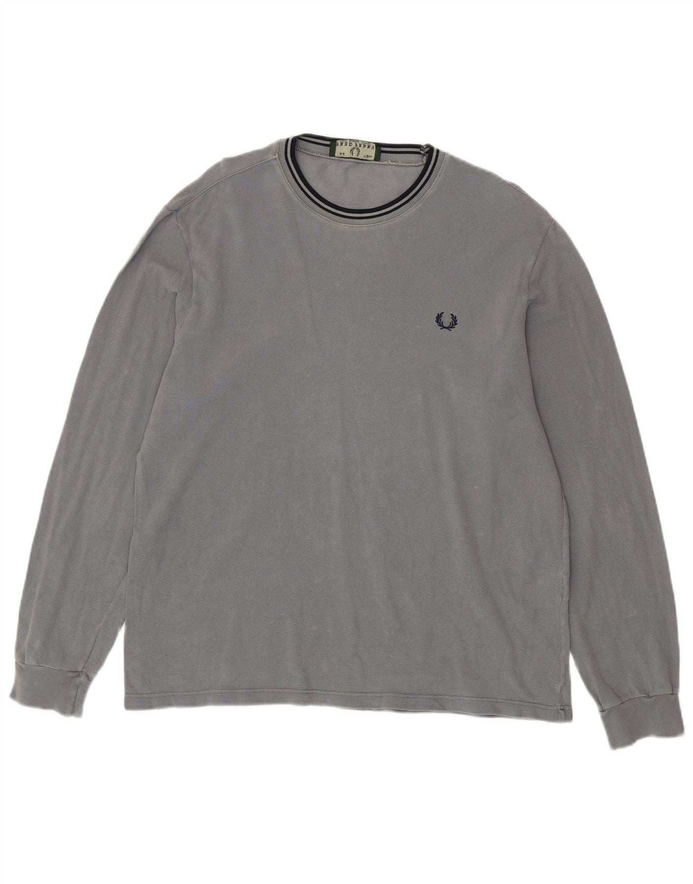 FRED PERRY Camiseta para hombre de manga larga de algodón gris medio