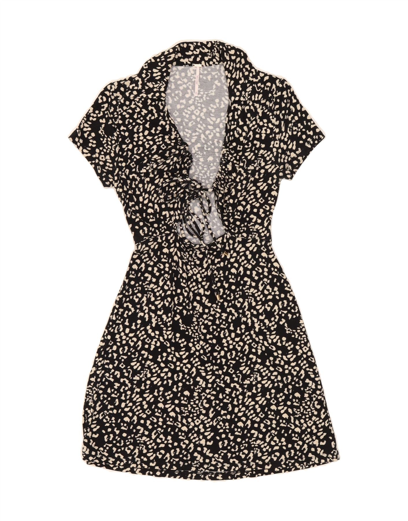 FREE PEOPLE Womens A-Line Dress UK 4 XS Black Animal Print Viscose