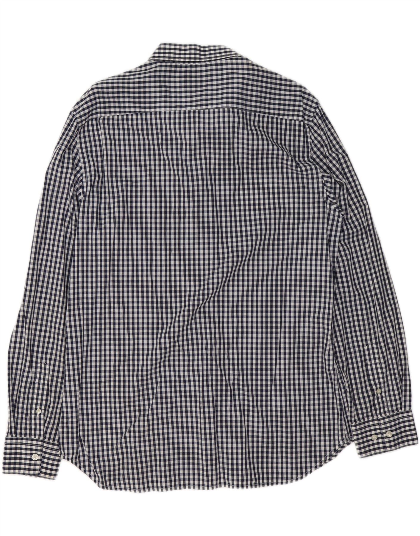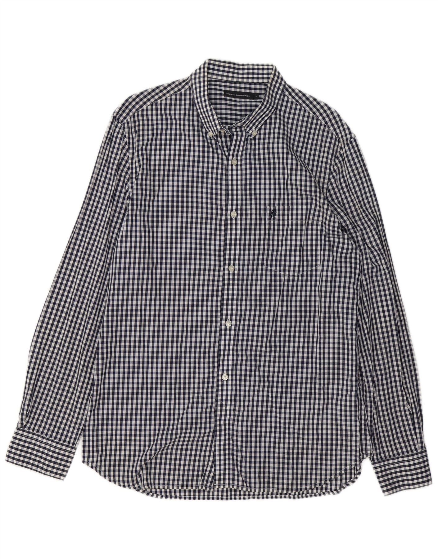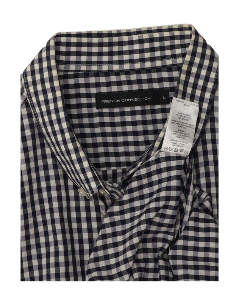 FRENCH CONNECTION Camisa para hombre grande de algodón a cuadros azul marino
