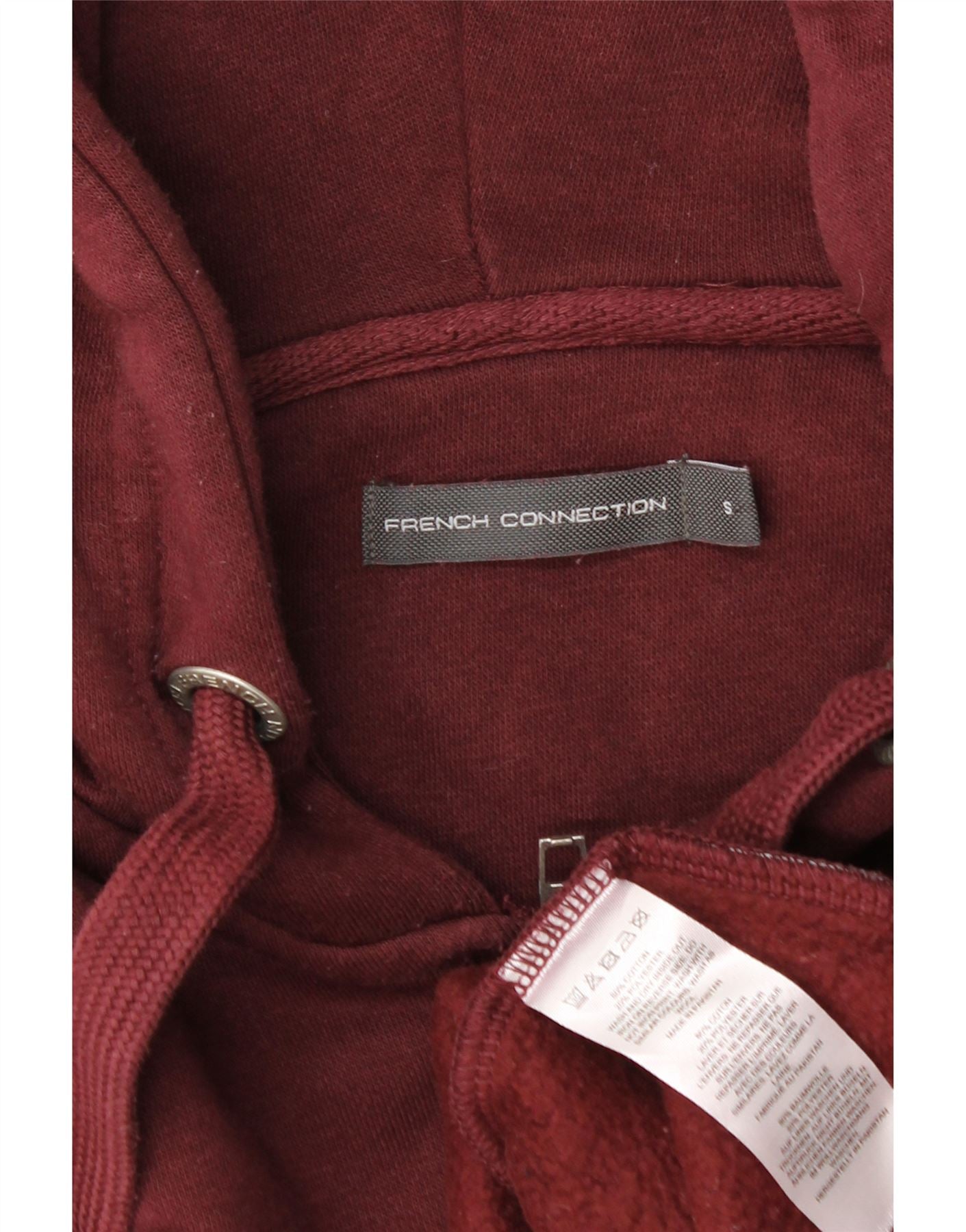 FRENCH CONNECTION Suéter con capucha y cremallera para hombre pequeño de algodón burdeos
