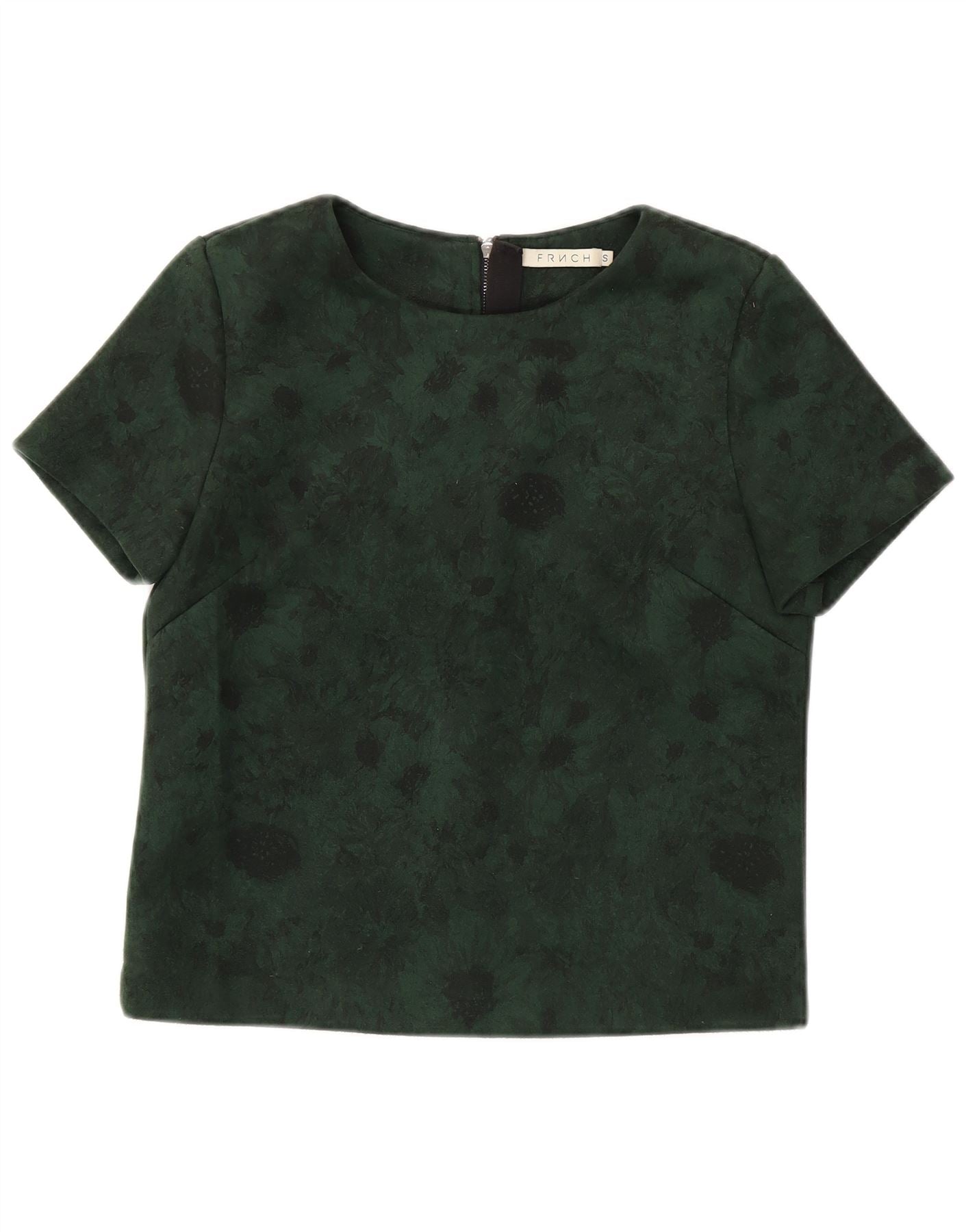 FRNCH Blusa corta para mujer Top UK 46 Poliéster floral verde pequeño