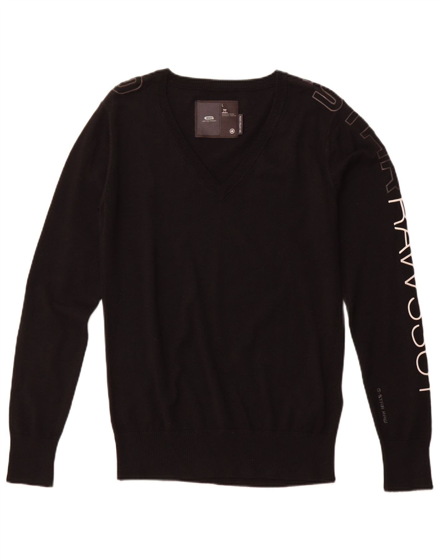 G-STAR Jersey con cuello en V gráfico para hombre, talla grande, algodón negro