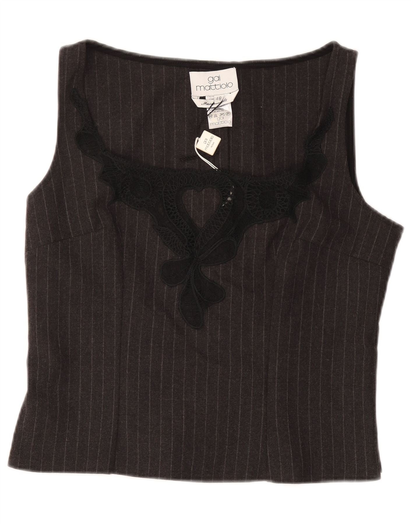 GAI MATTIOLO Blusa corta sin mangas para mujer IT 48 XL Gris a rayas