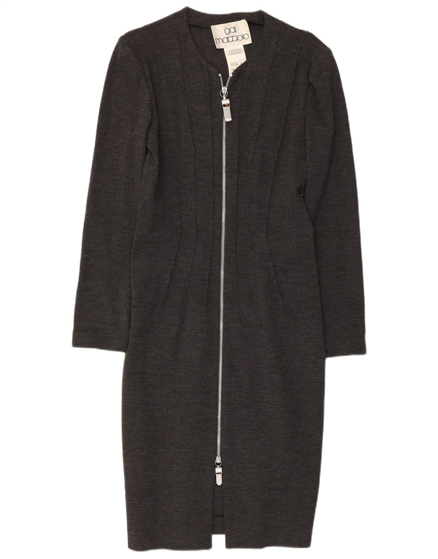 GAI MATTIOLO Vestido ajustado de manga larga para mujer UK 46 Lana virgen gris grande