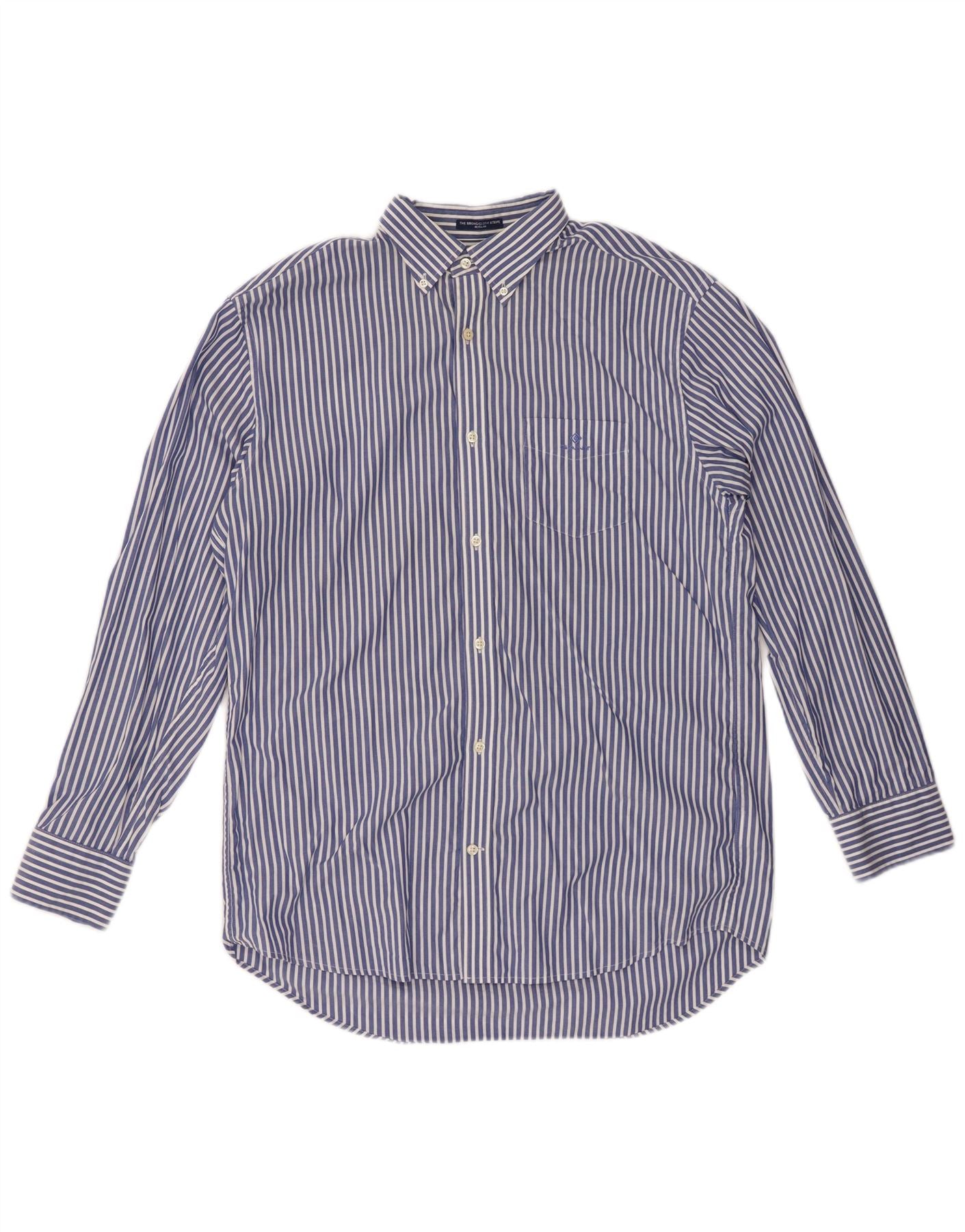 GANT Camisa de corte regular para hombre, talla 41/42 16 1/2 grande, algodón a rayas azules
