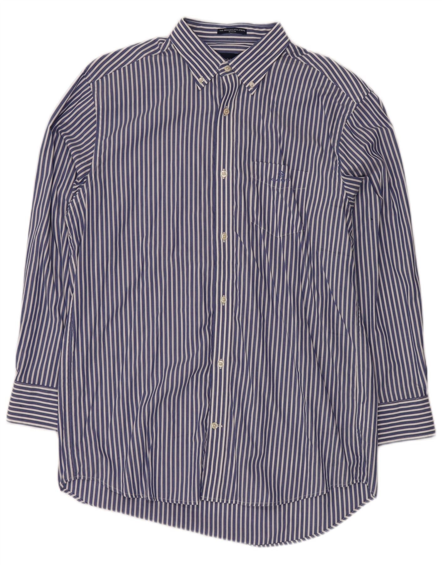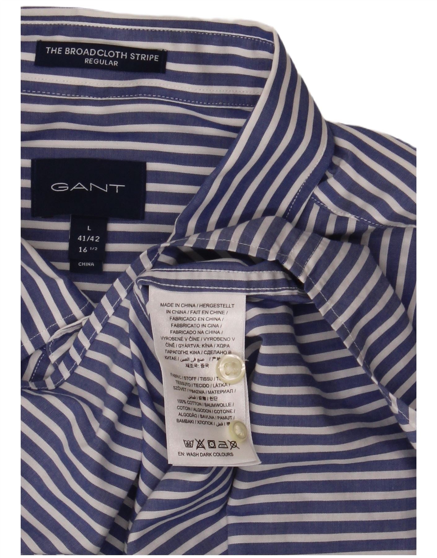 GANT Camisa de corte regular para hombre, talla 41/42 16 1/2 grande, algodón a rayas azules