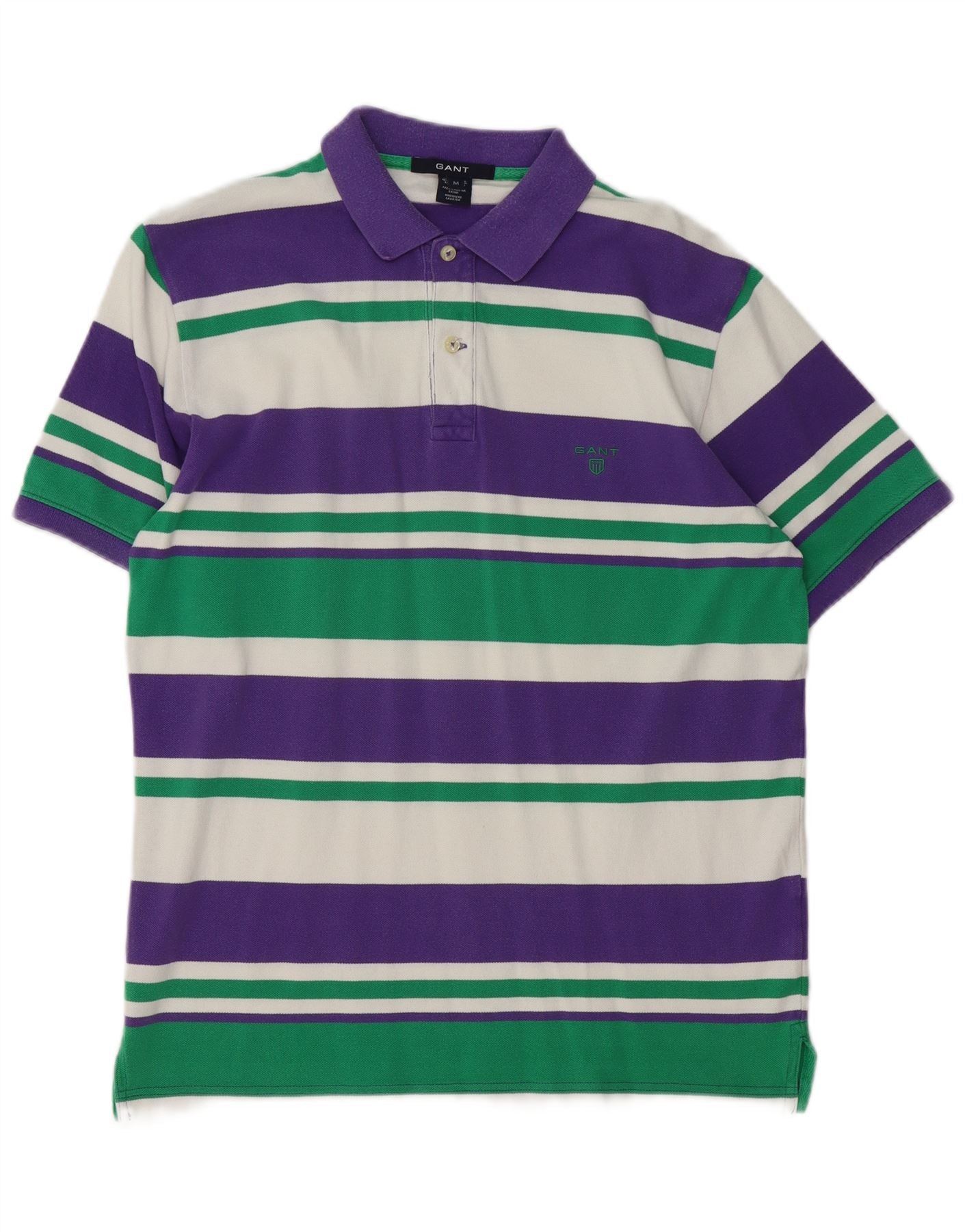 - Descripción de IA: Este polo de Gant para hombre está confeccionado con un tejido de punto suave que ofrece una sensación de comodidad. Presenta un escote de cuello clásico con un elegante cierre de botón. El diseño muestra un atrevido patrón de rayas en blanco, morado y verde. Las mangas cortas y el corte regular crean una silueta relajada y atemporal. Un sutil logotipo bordado añade un toque distintivo a este estilo clásico.