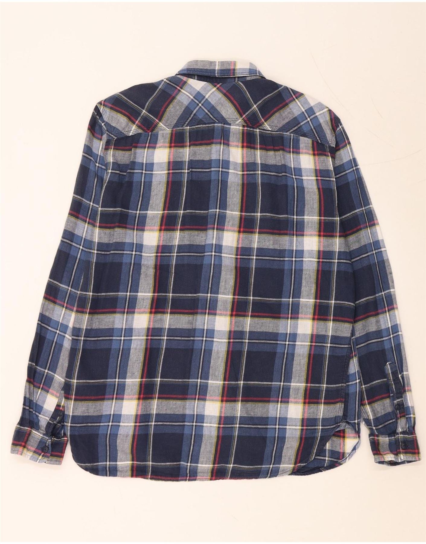 Camisa de franela GAP para hombre de lino a cuadros azul marino grande