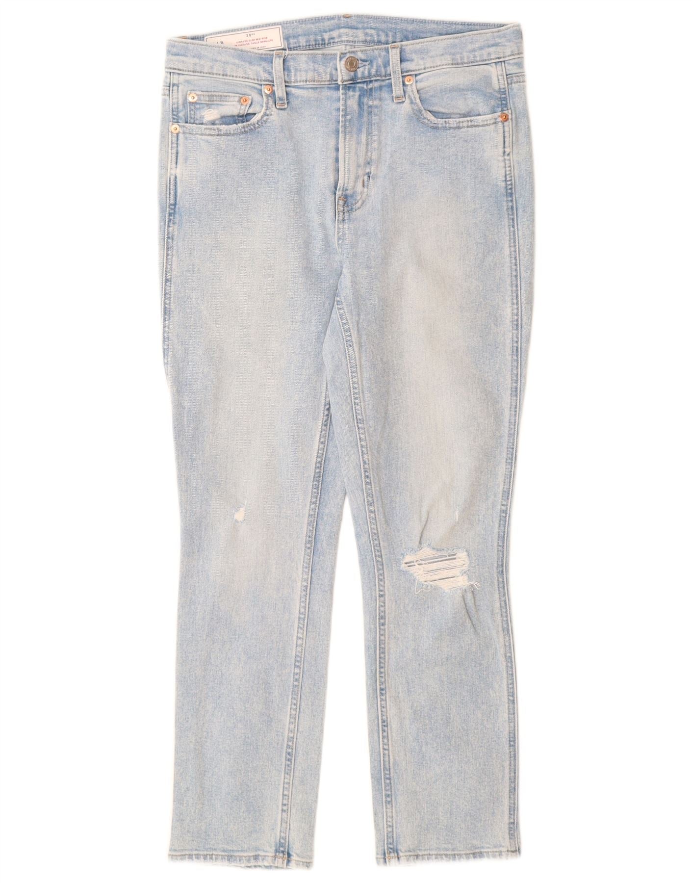 Vaqueros ajustados de talle medio desgastados para mujer GAP W30 L27 Algodón azul