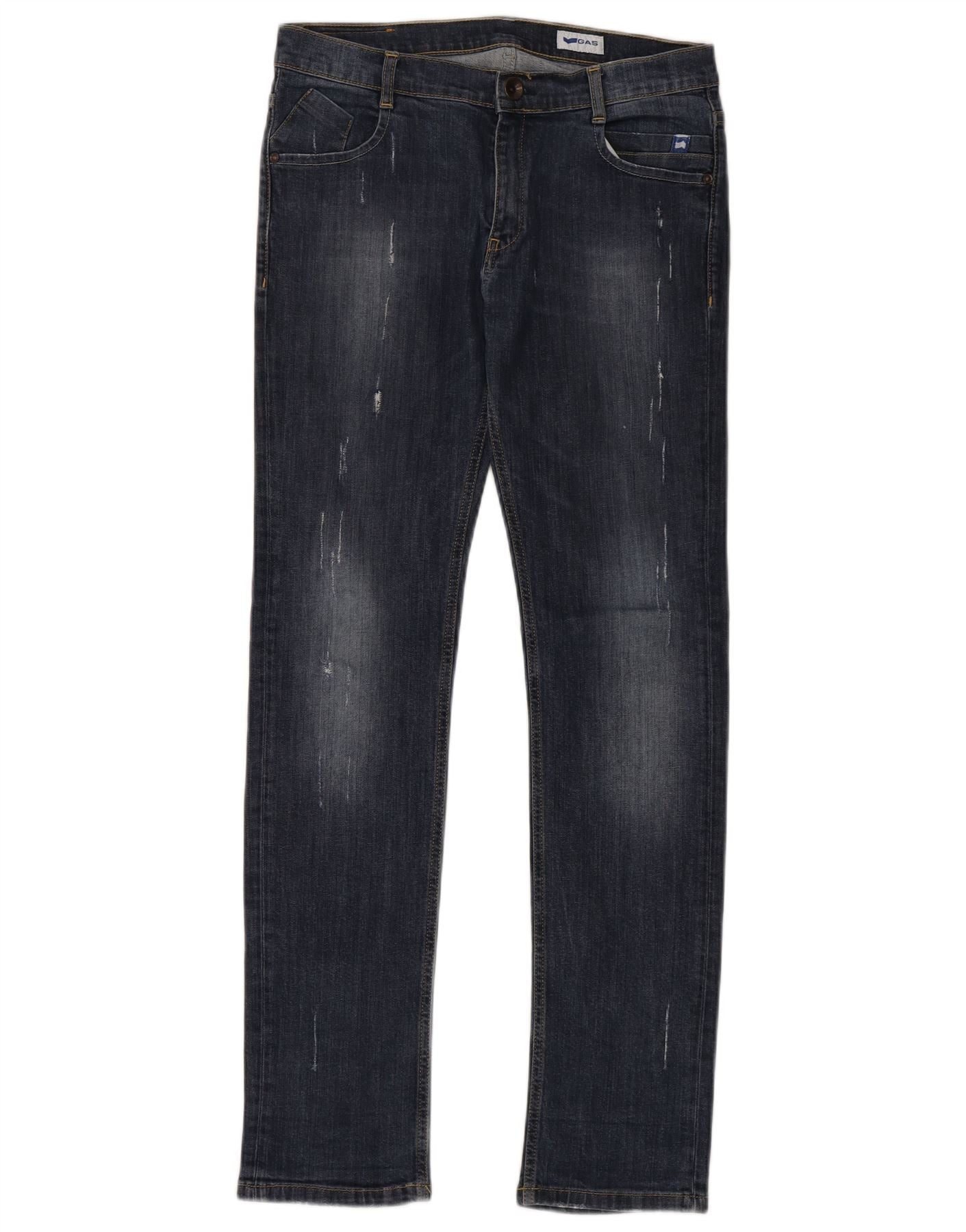 GAS Vaqueros pitillo desgastados para niños 13-14 años W30 L32 Algodón azul