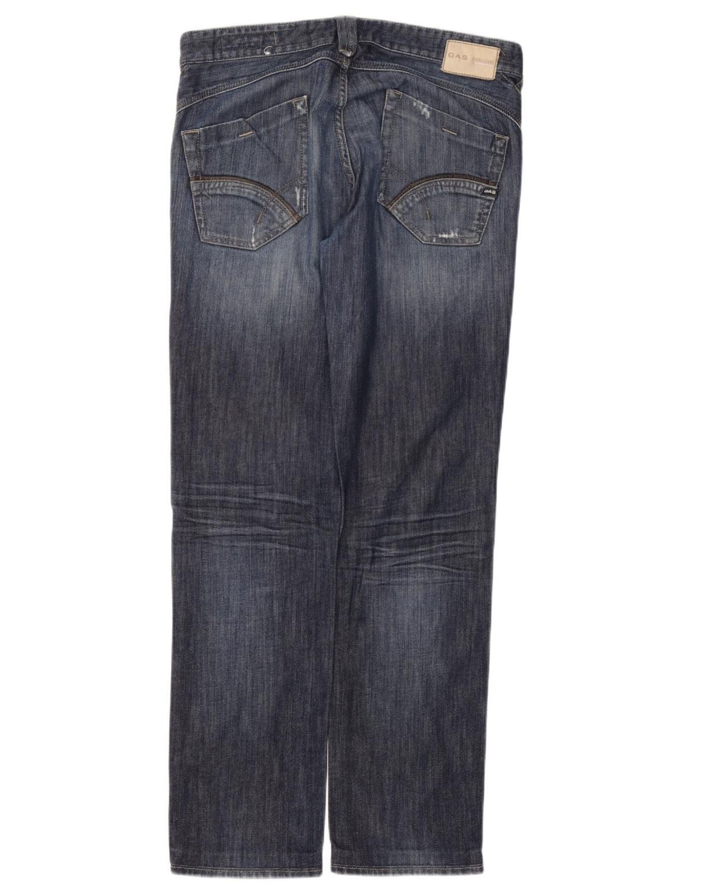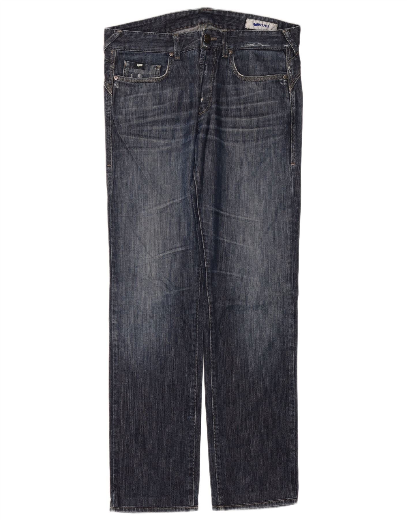 GAS Vaqueros rectos desgastados para hombre W34 L32 Algodón azul marino