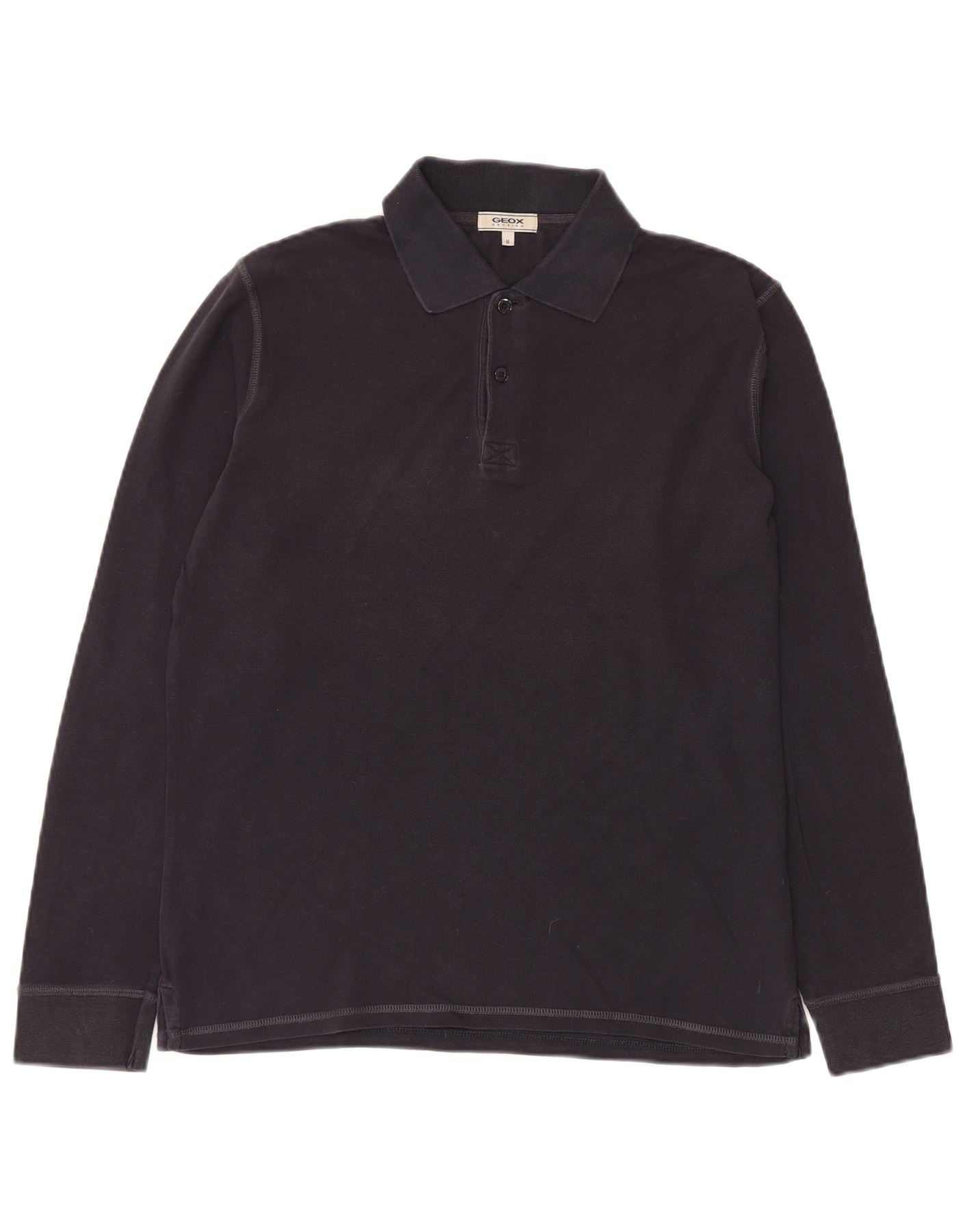 GEOX Hombre Respira Polo de Manga Larga Azul Marino Mediano