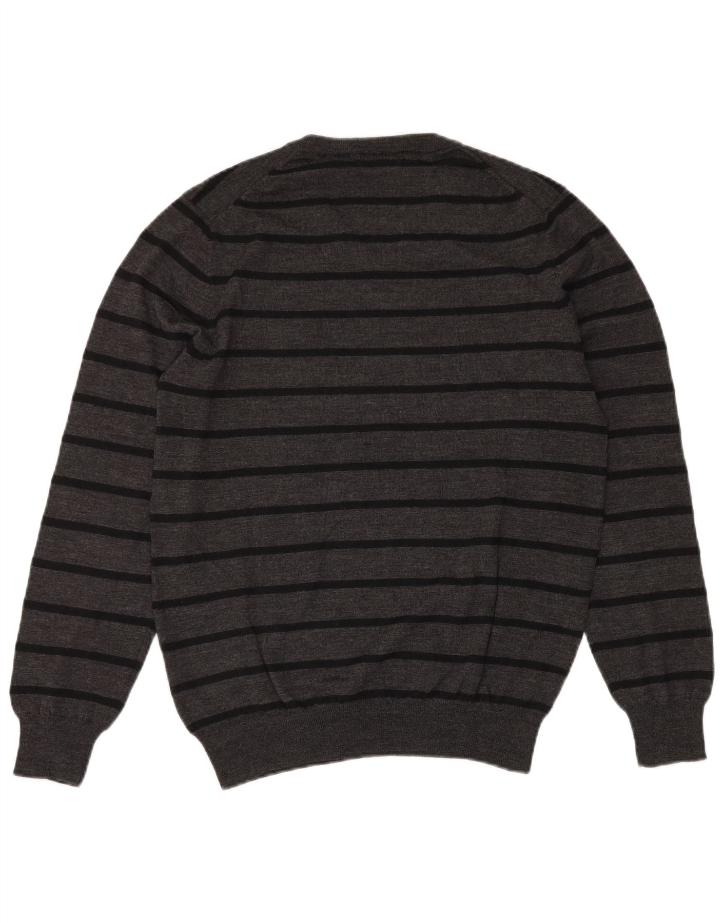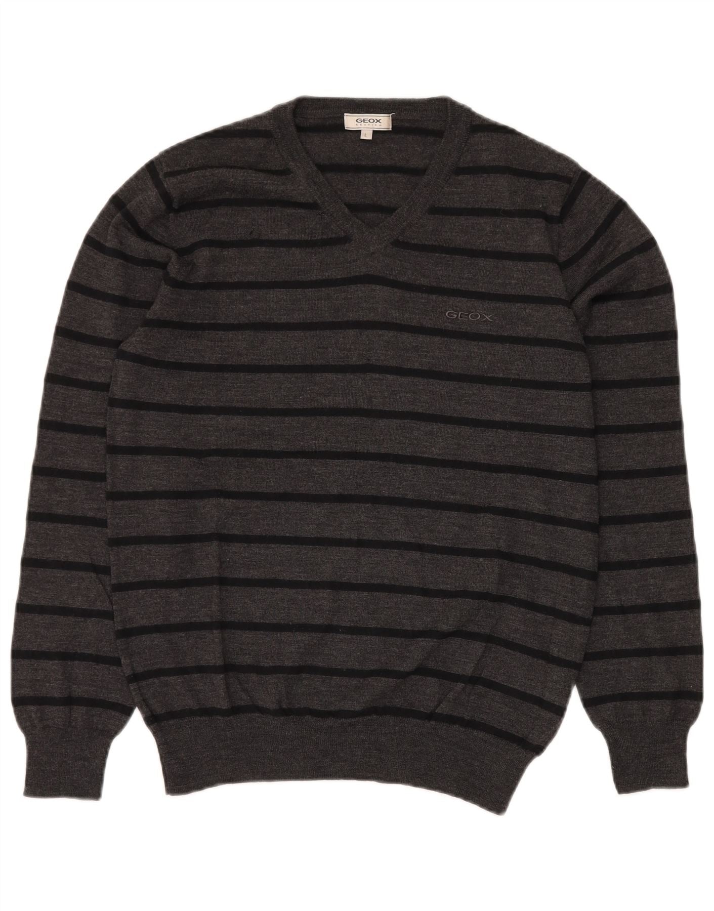 GEOX Suéter tipo jersey con cuello en V para mujer UK 40 Grande Lana merino a rayas grises