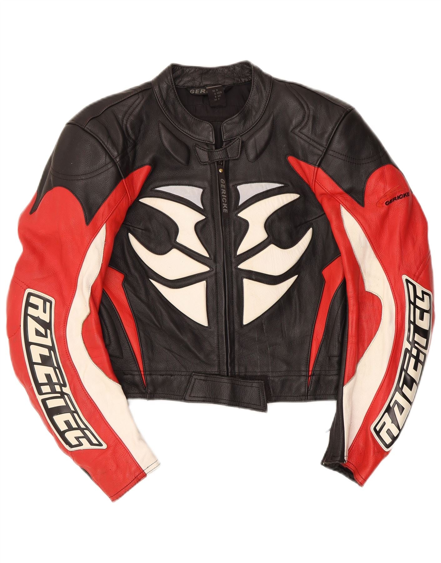 - Descripción de IA: Esta chaqueta Racer para hombre de Hein Gericke está confeccionada con cuero de primera calidad y ofrece una textura robusta pero flexible. Presenta un llamativo patrón de bloques de colores en negro, rojo y blanco, con detalles gráficos llamativos. El escote con cuello y el cierre de cremallera completa proporcionan un ajuste seguro. Las mangas largas tienen puños y están acolchadas para mayor protección. Los bolsillos con cremallera añaden practicidad. Esta chaqueta de corte entallado está diseñada para el motociclismo y combina estilo con características esenciales.