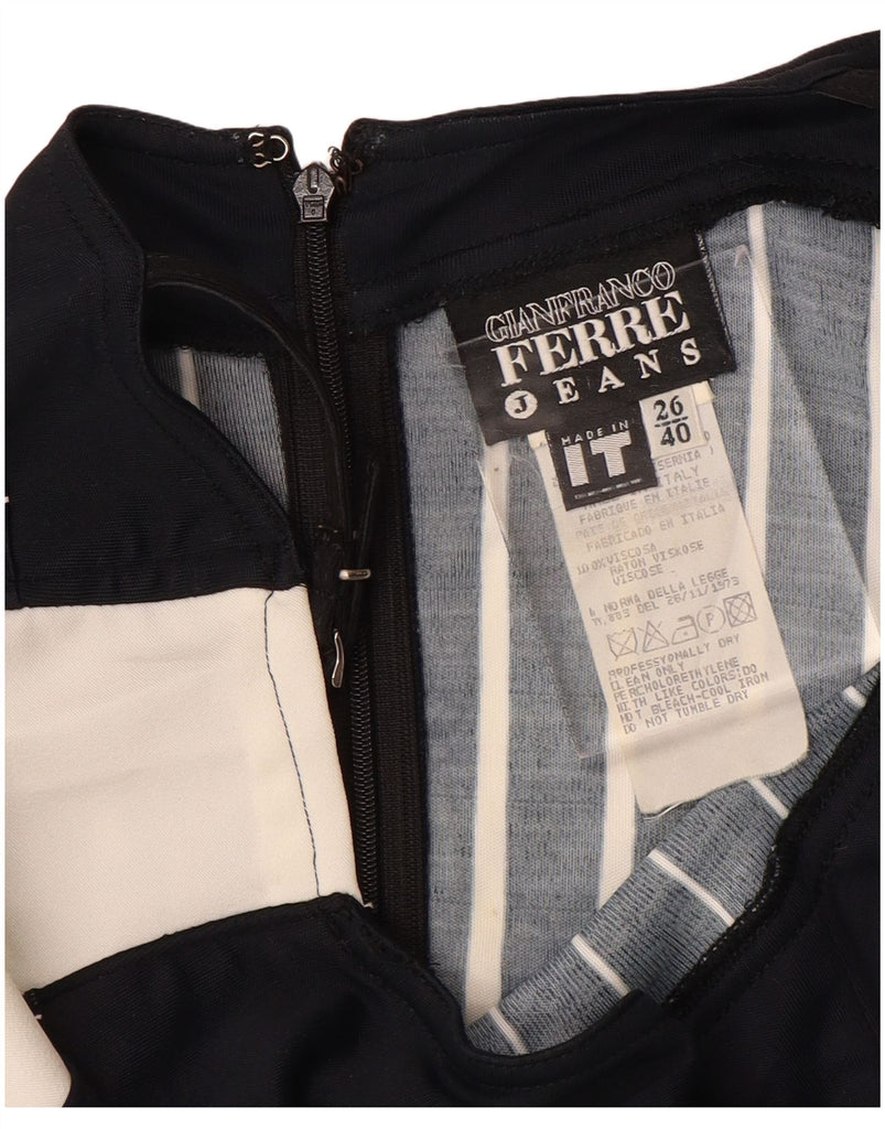 GIANFRANCO FERRE Womens Sundress IT 40 Small Black Striped Viscose