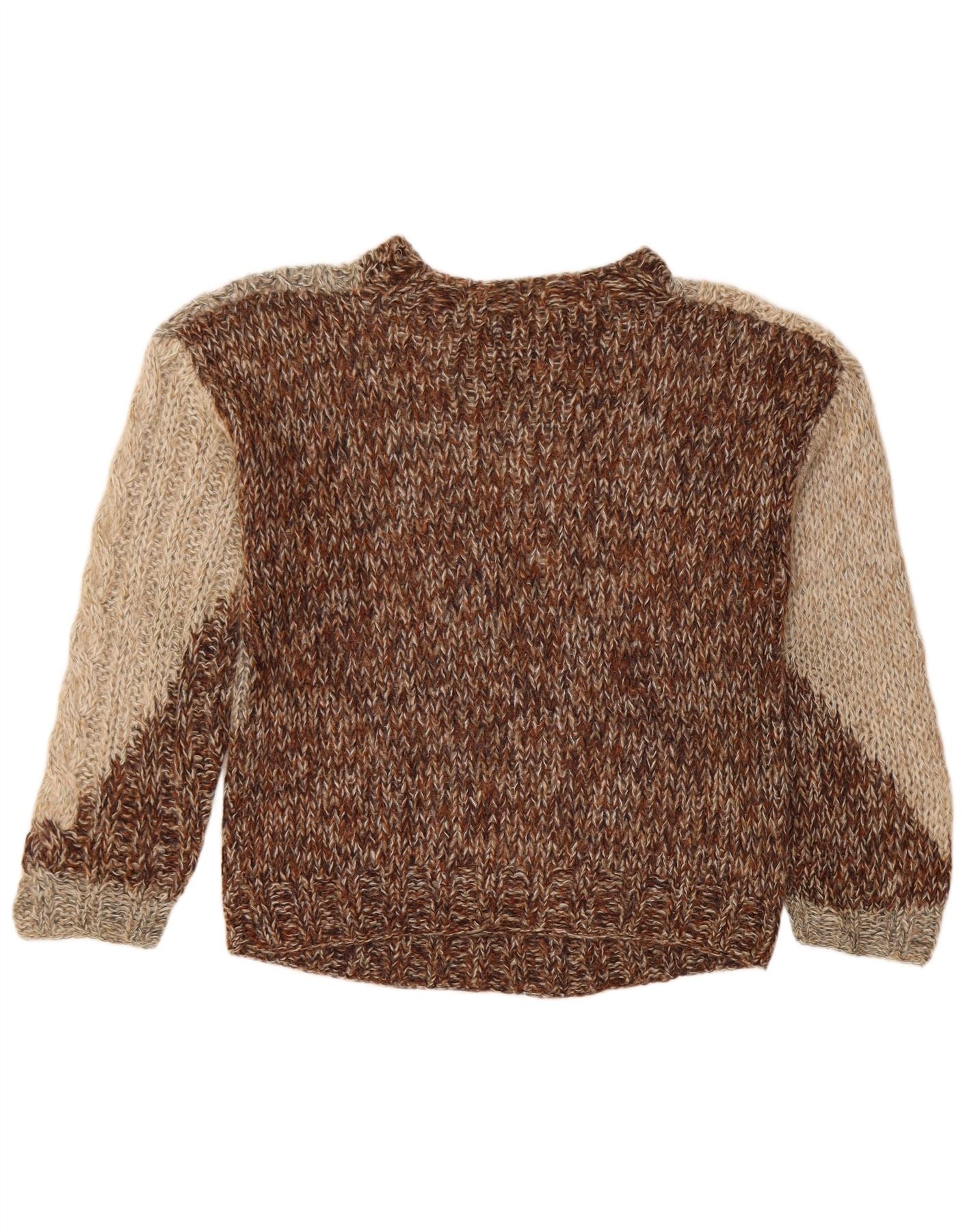 Giunco Jersey de cuello redondo para mujer UK 10 Small Brown Colourblock Mohair