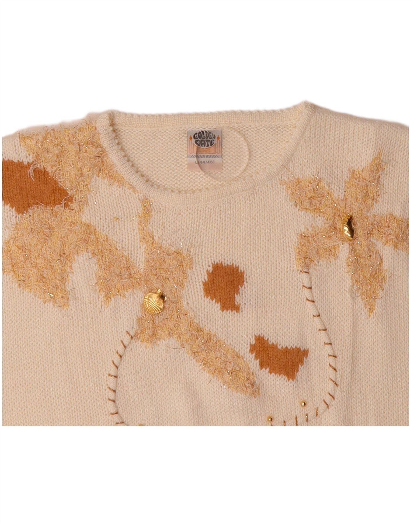 GOLDEN GATE Womens Crew Neck Jumper Sweater IT 44/46 Large Off White
