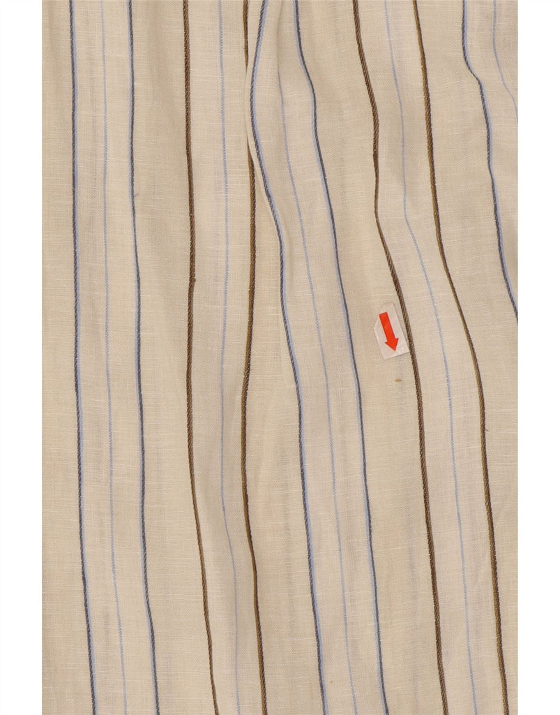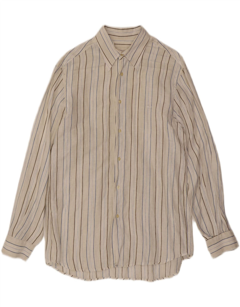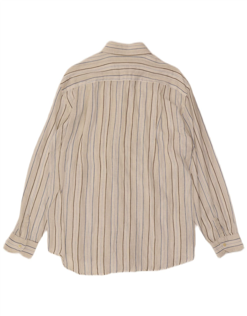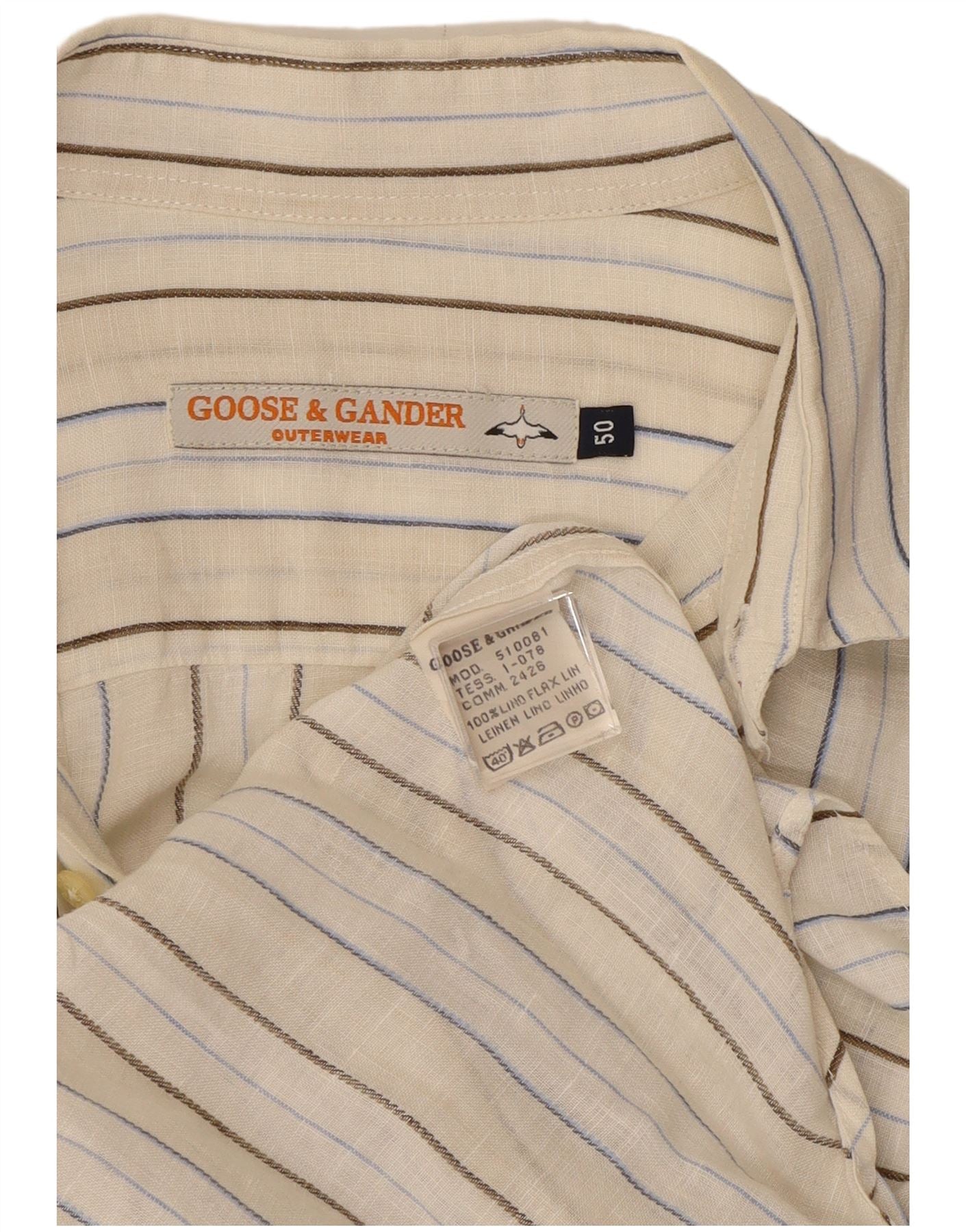GOOSE & GANDER Camisa de hombre IT 50 Medium Off White Lino a rayas