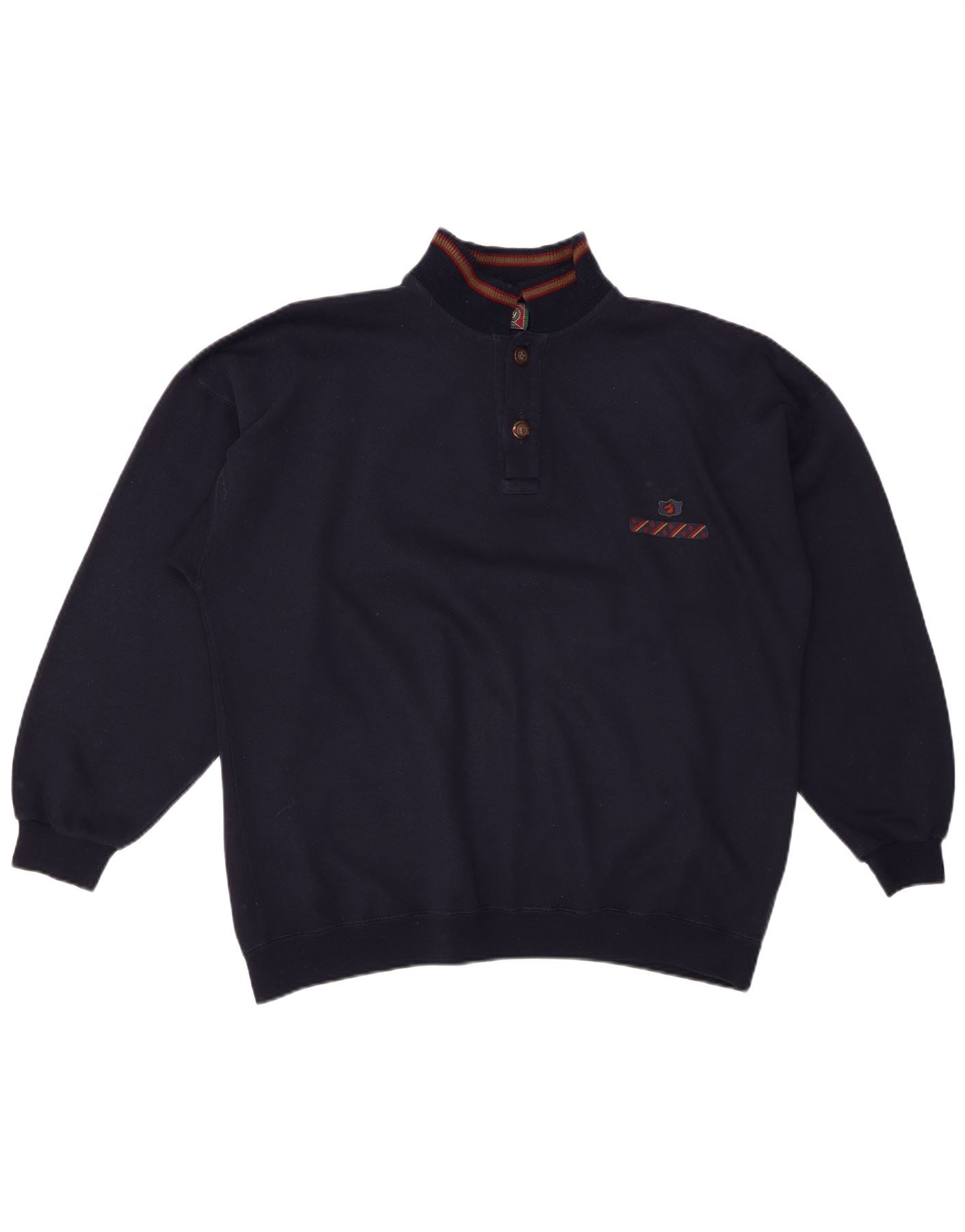 GREAT BAY Suéter tipo jersey con cuello y botones para hombre, tamaño grande, algodón azul marino