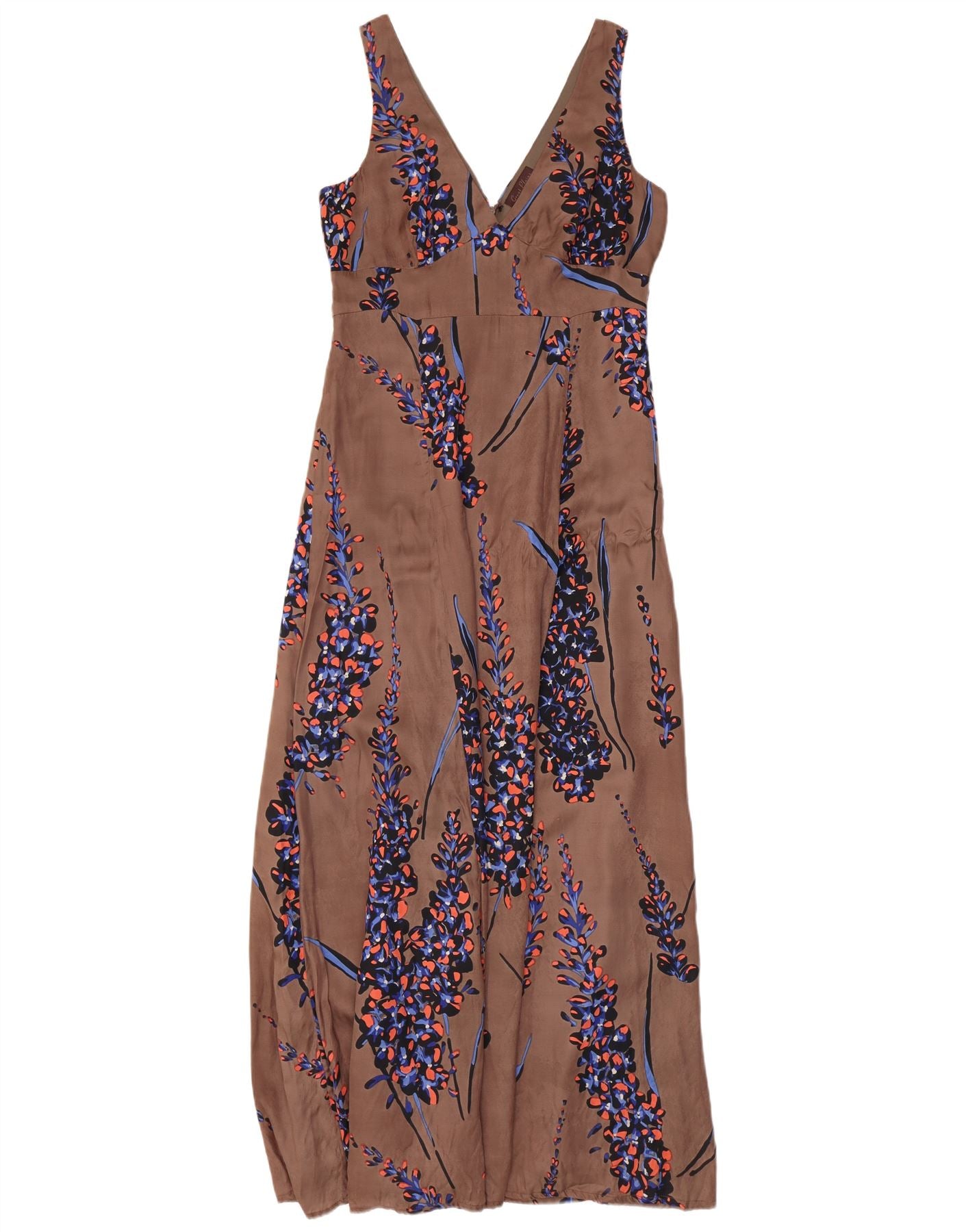 GREAT PLAINS Vestido largo sin mangas para mujer UK 40 Rayón floral marrón medio