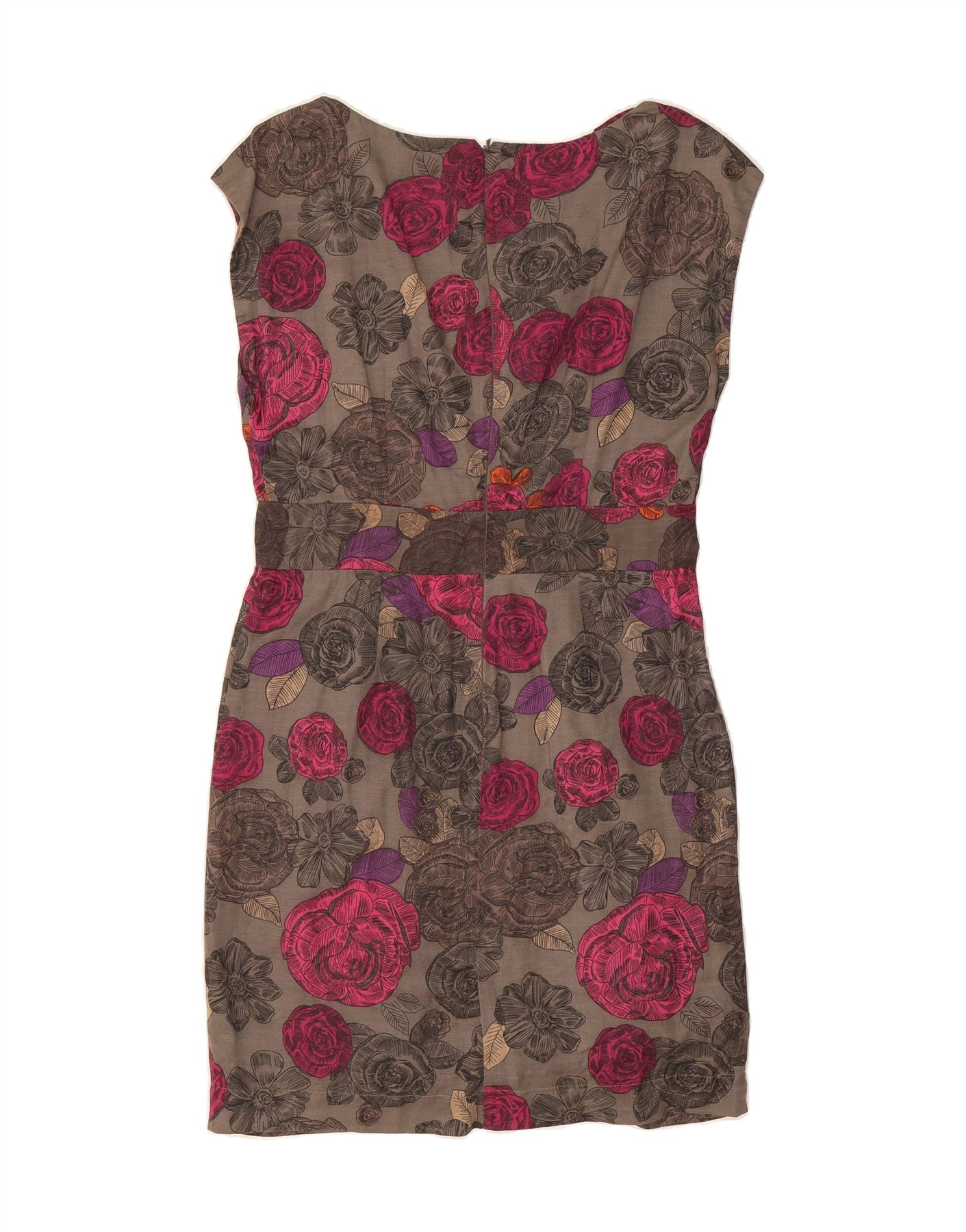 GREAT PLAINS Womens Sleeveless Sheath Dress UK 14 Large Grey Floral Cotton