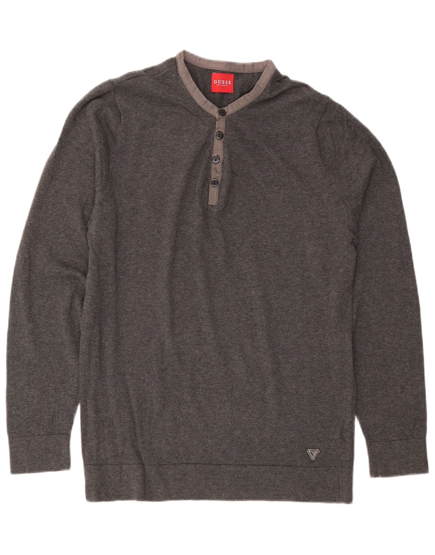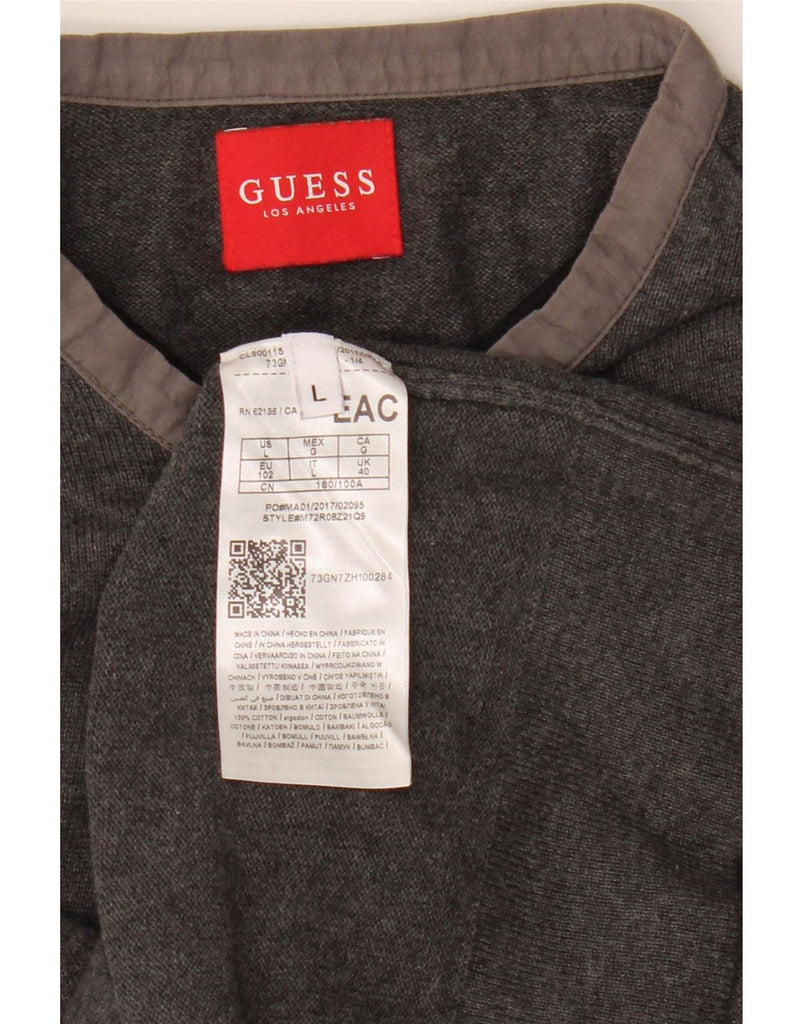 GUESS Jersey con cuello redondo para hombre, talla grande, algodón gris