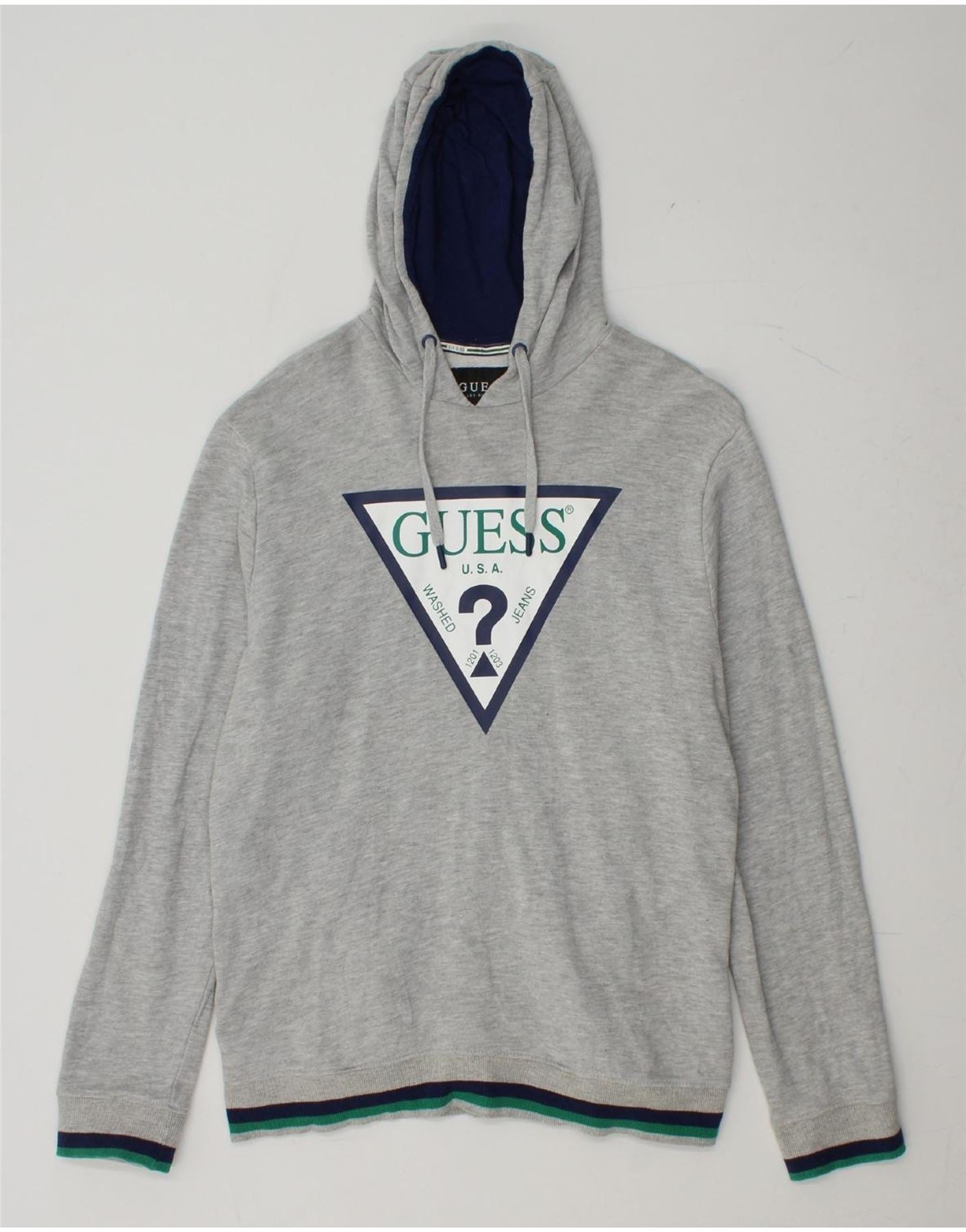 GUESS Sudadera con capucha gráfica para hombre Jersey grande de algodón gris
