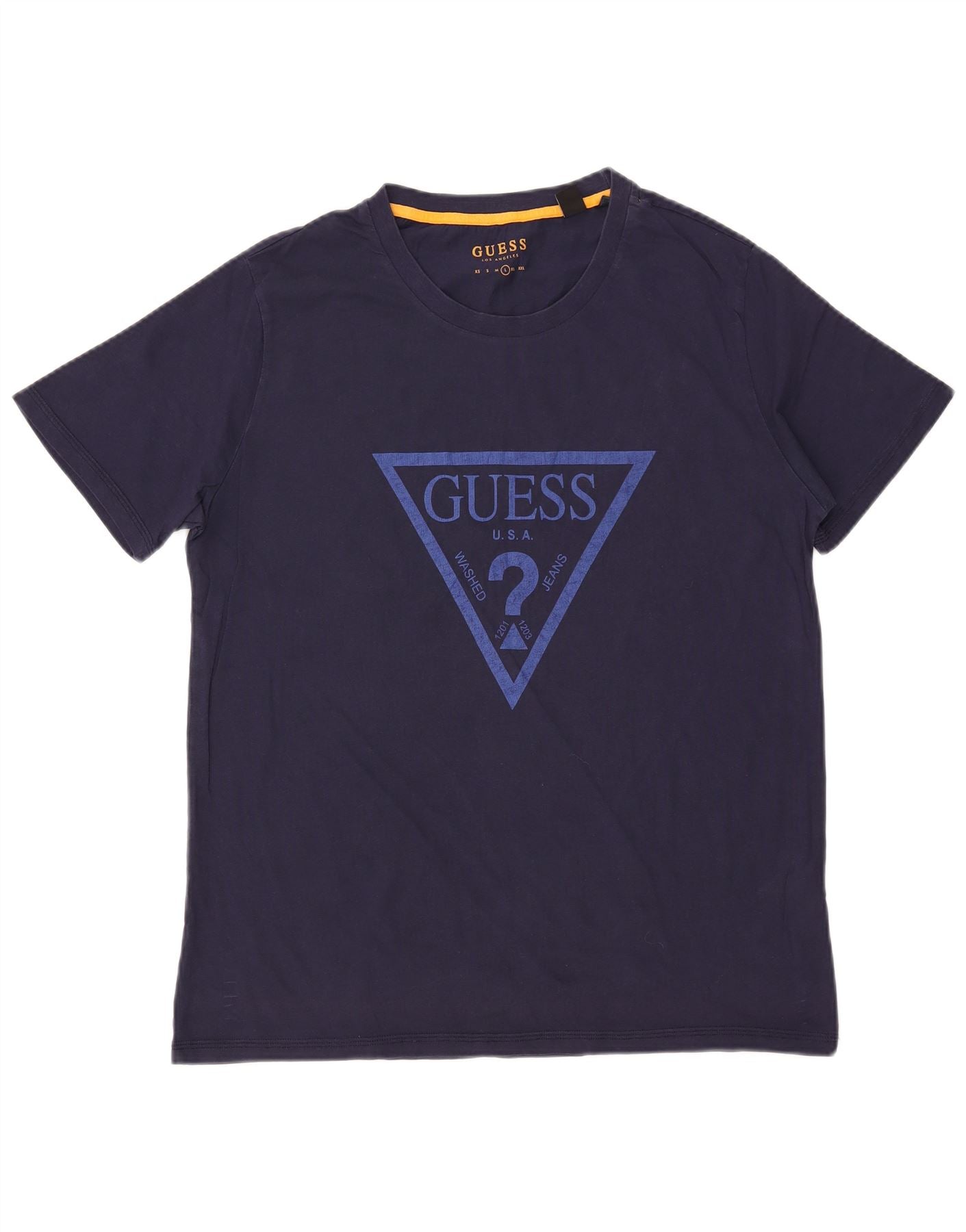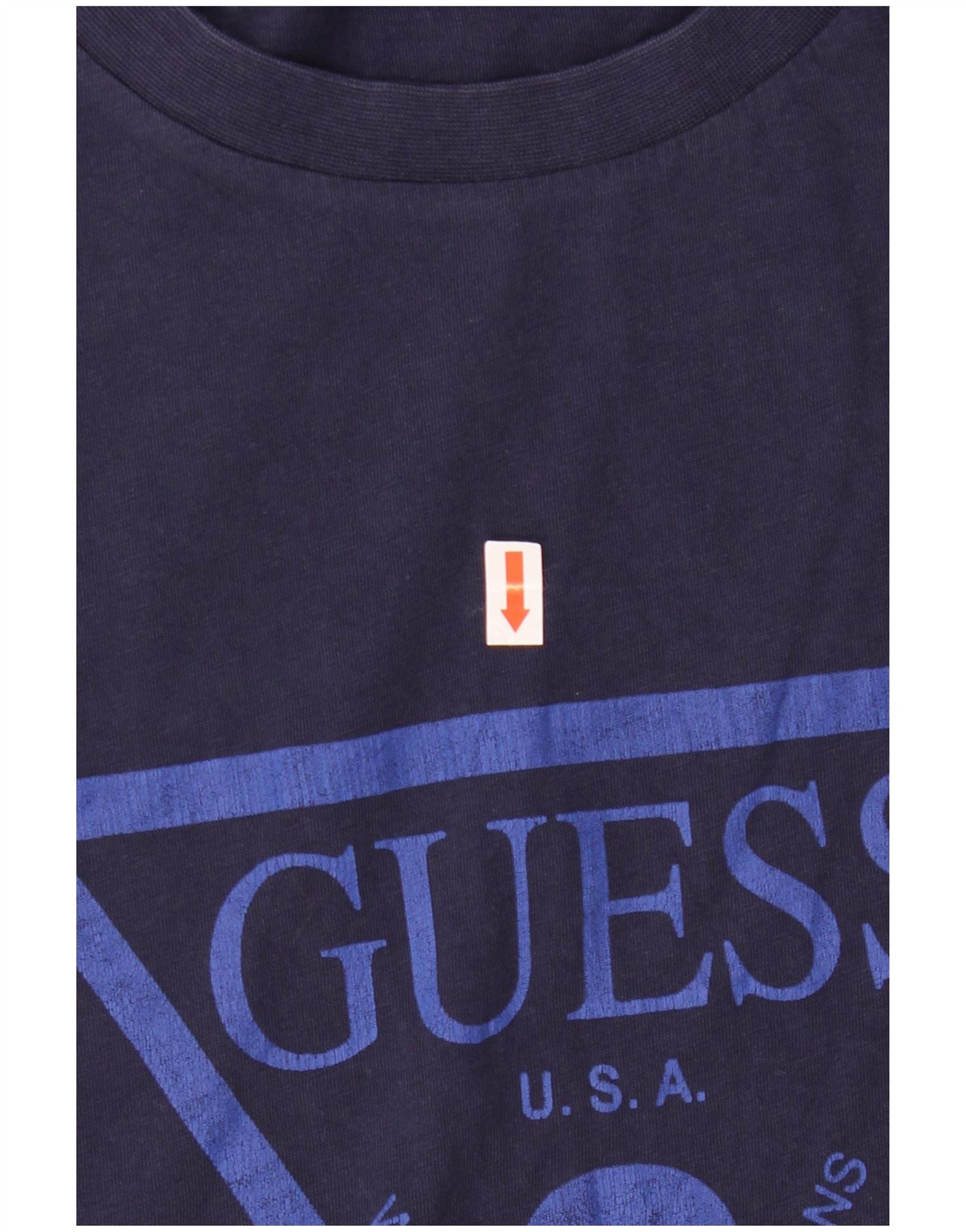 GUESS Camiseta gráfica para hombre Top grande de algodón azul marino