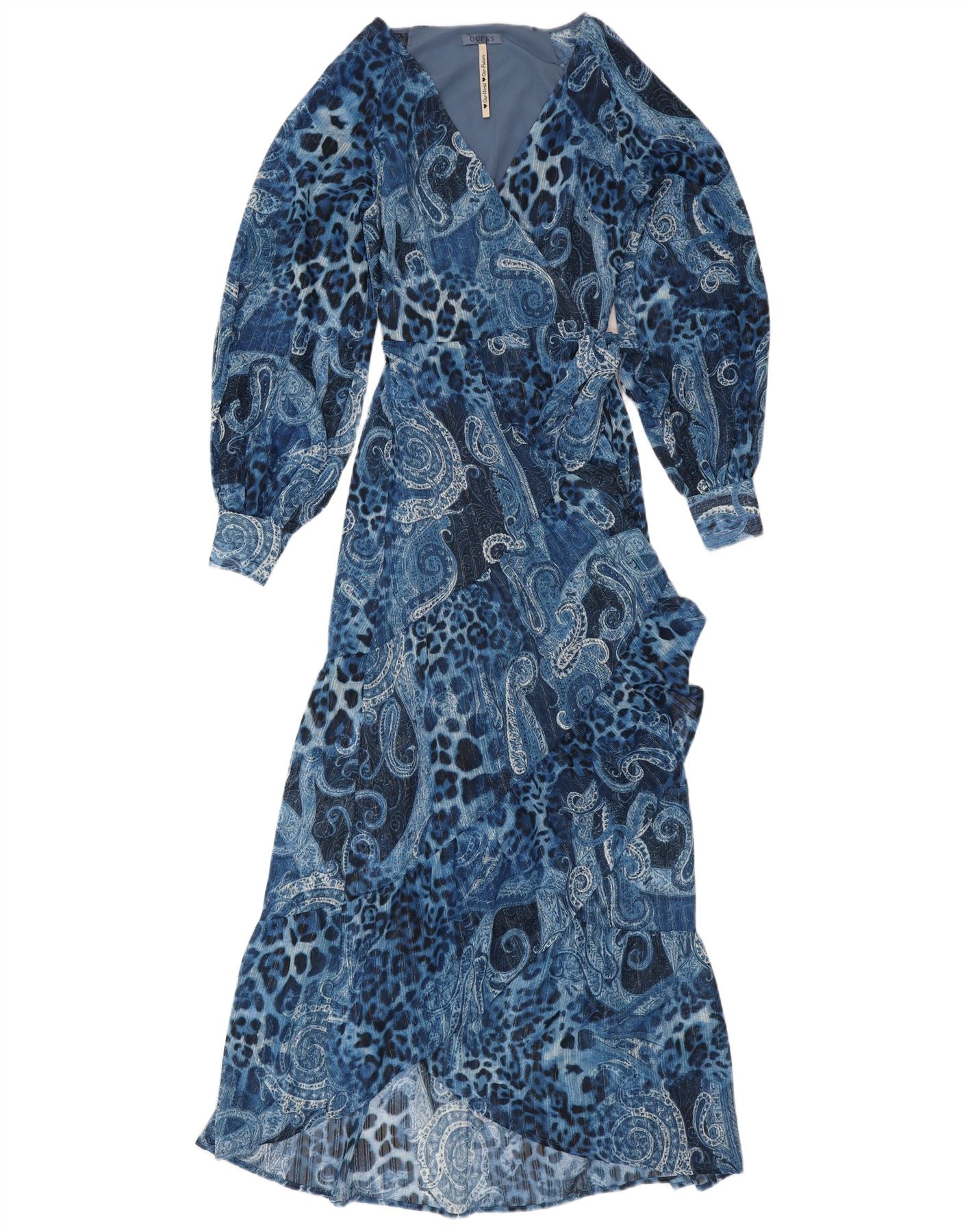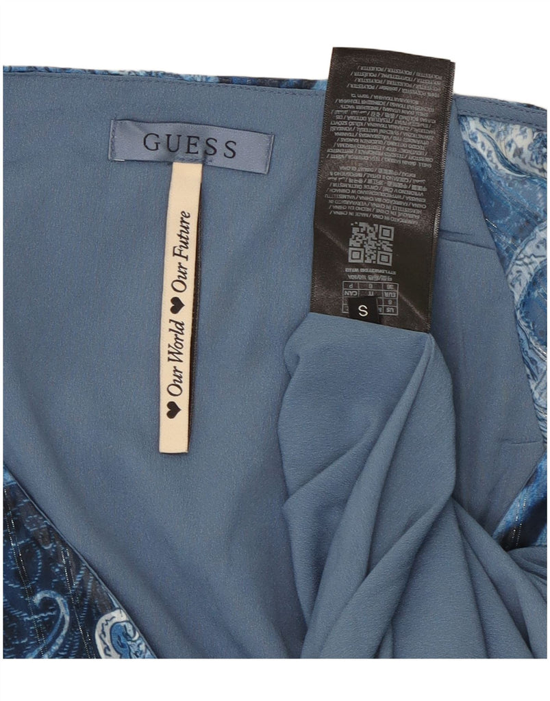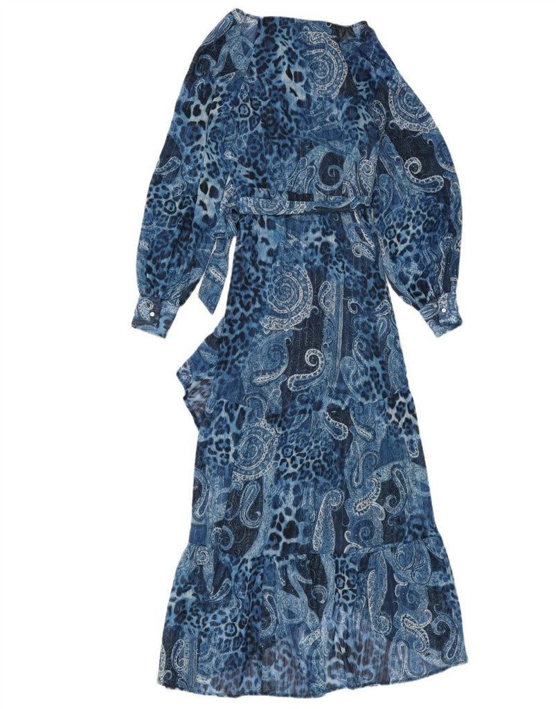 GUESS Vestido cruzado asimétrico para mujer UK 10 Small Blue Paisley Poliéster