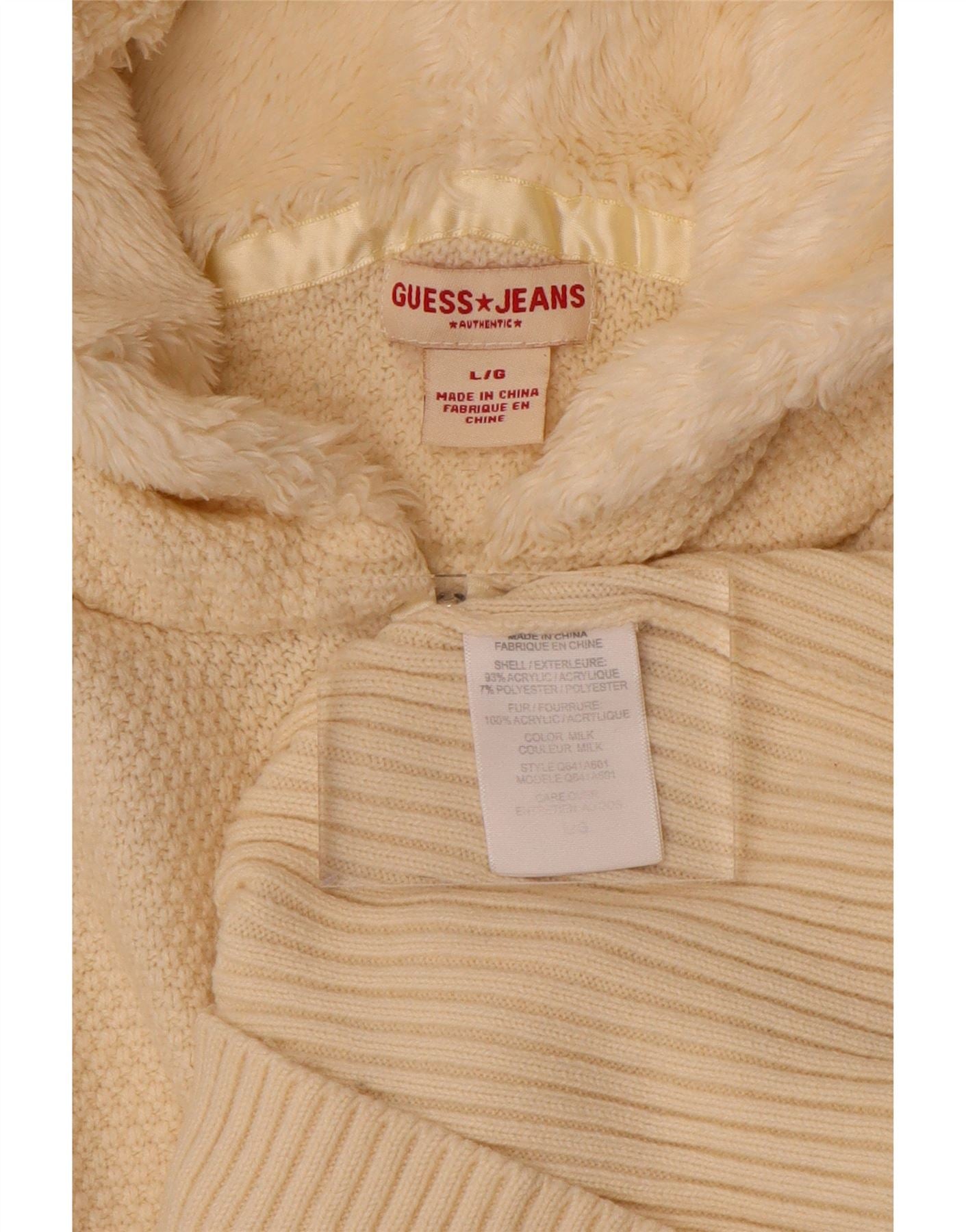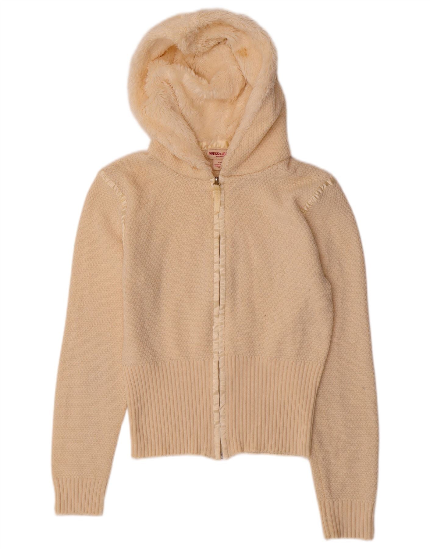 GUESS Suéter tipo cárdigan con capucha para mujer Reino Unido 14 Grande Acrílico blanco roto