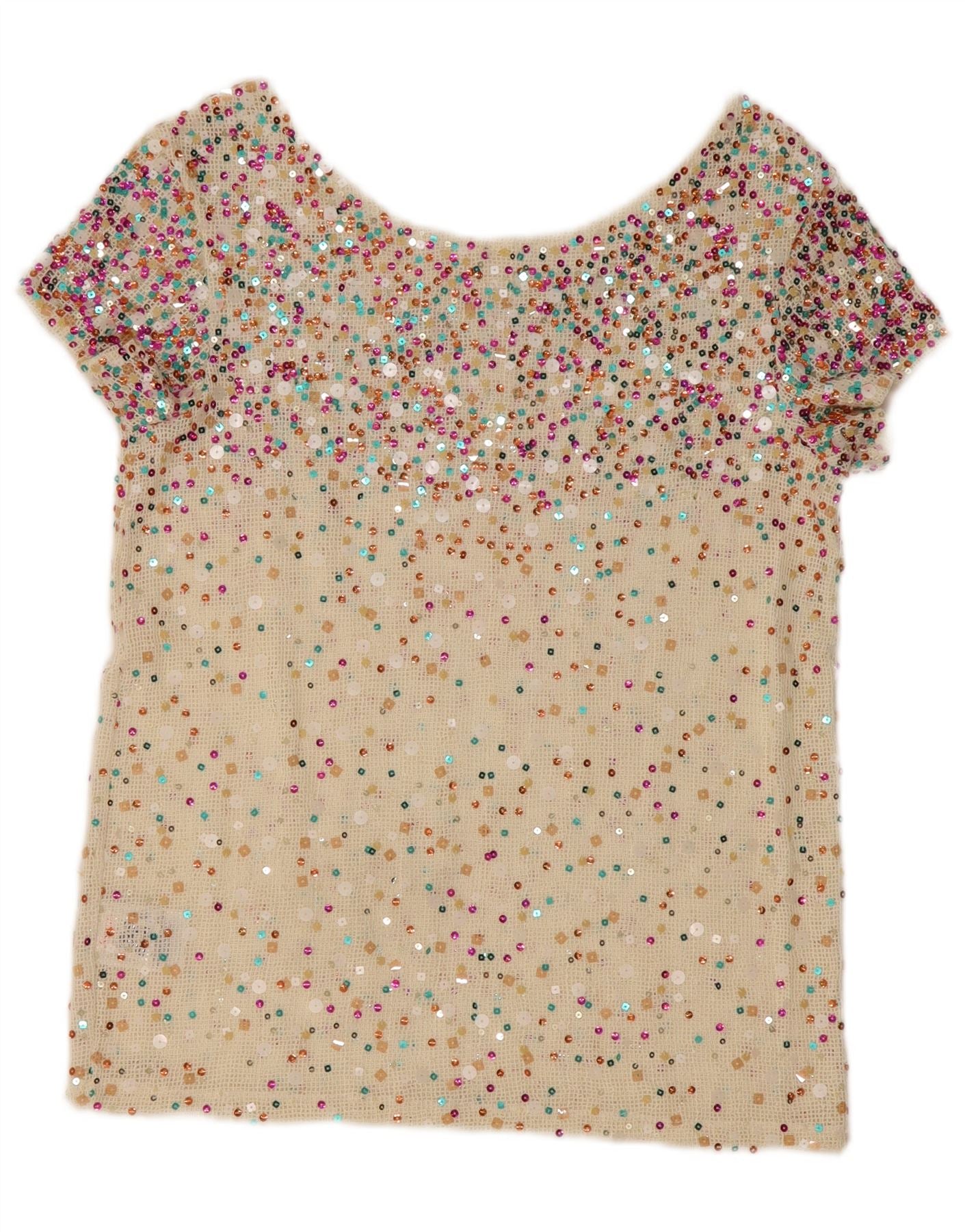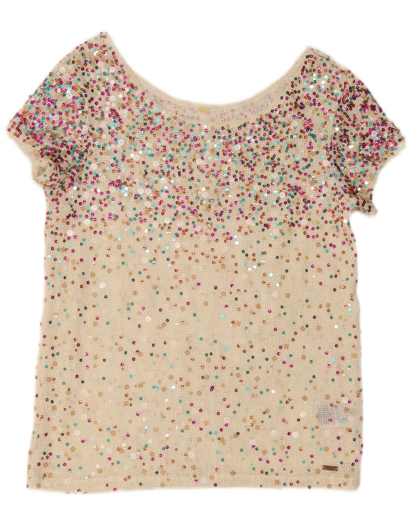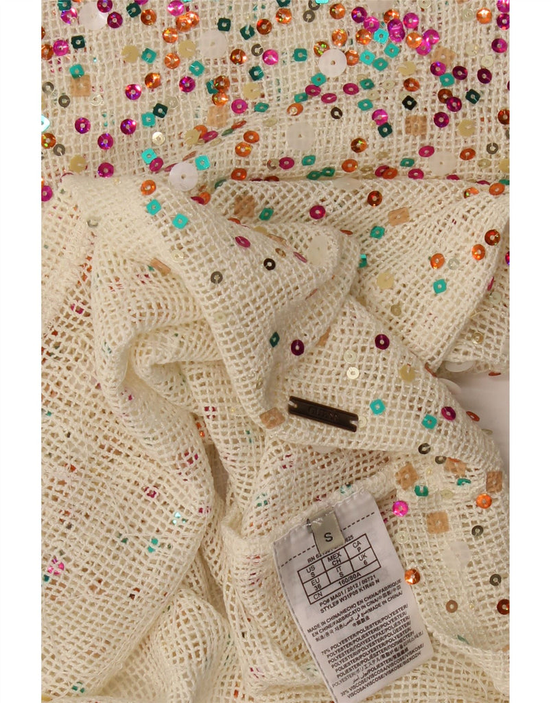GUESS Blusa de crochet con lentejuelas para mujer Top UK 10 Small Off White Poliéster