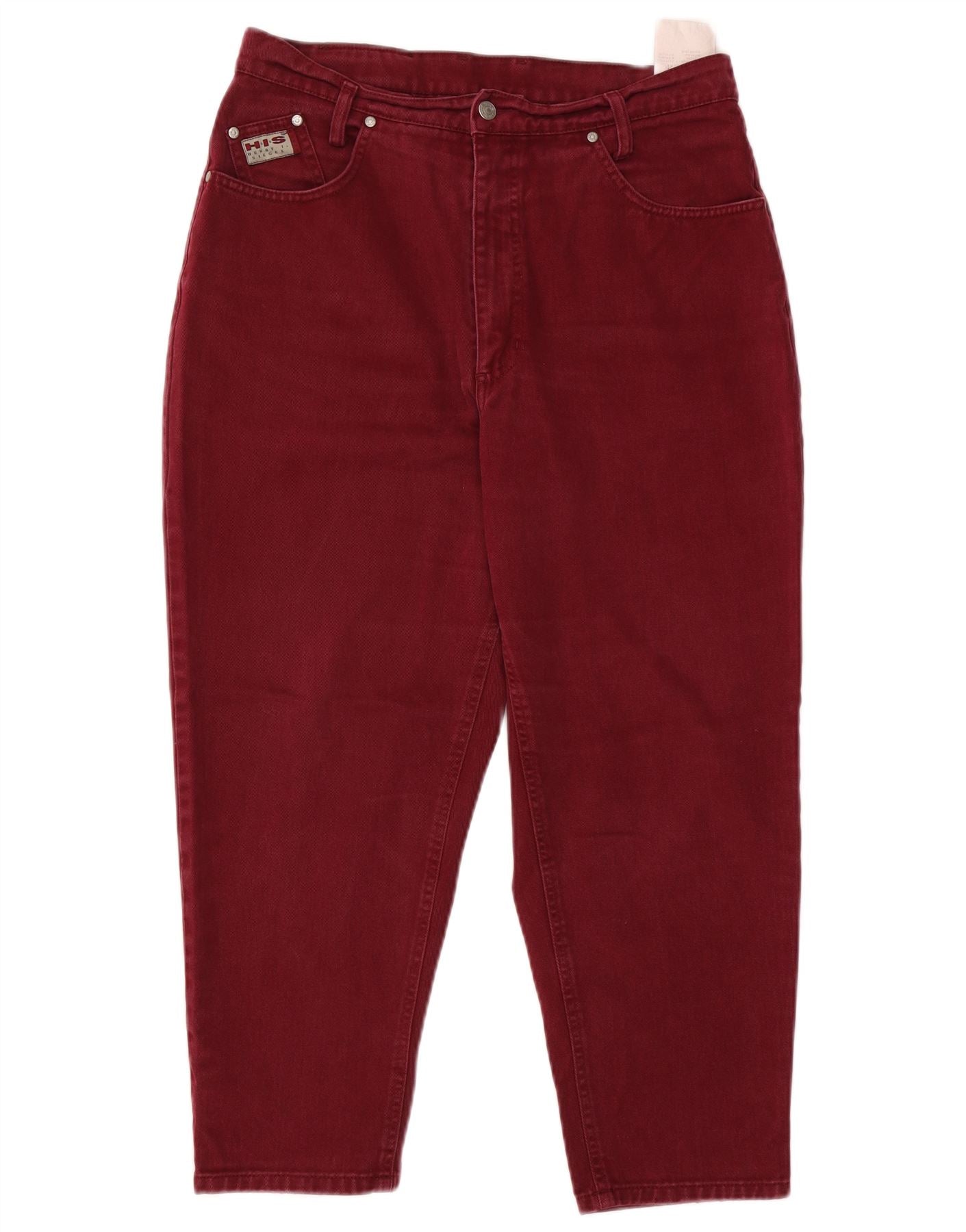 H.I.S Vaqueros cónicos cortos de cintura alta para mujer UK 20 2XL W34 L25 Borgoña