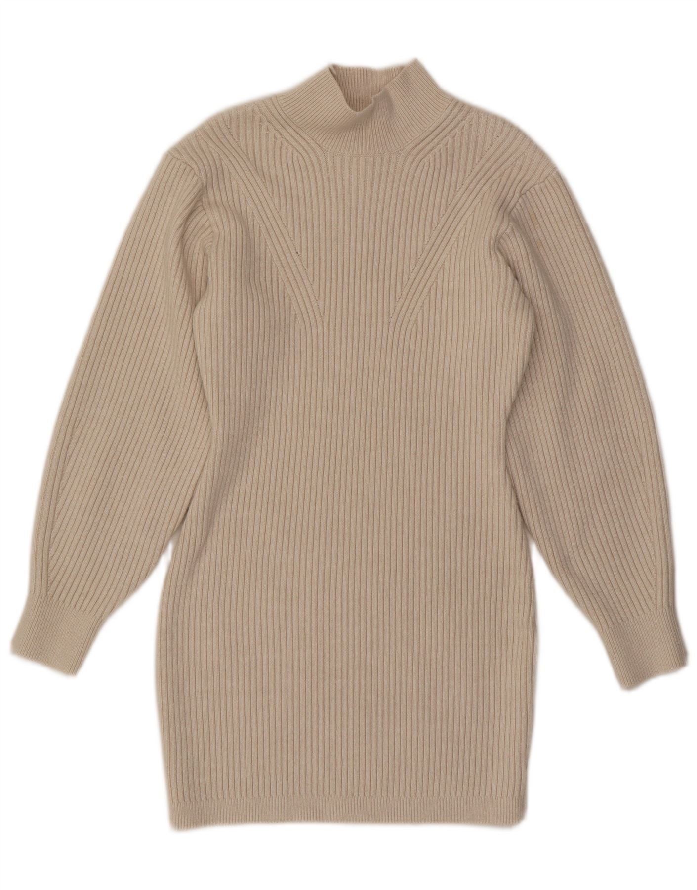 H&M Womens Long Sleeve Turtle Neck Jumper Dress UK 12 Medium Off White