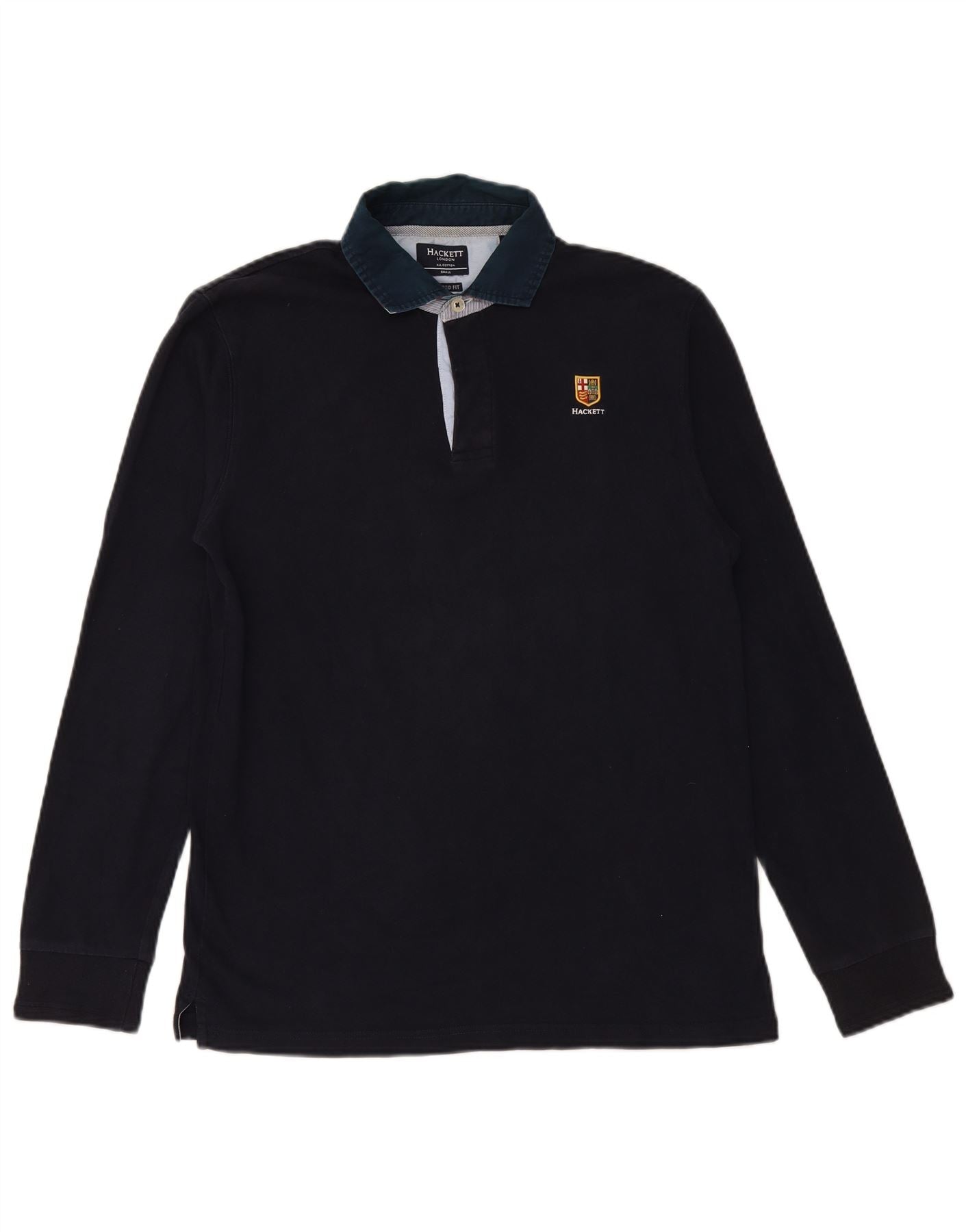HACKETT Mens Tailored Fit Long Sleeve Rugby Polo Shirt Small Navy Blue