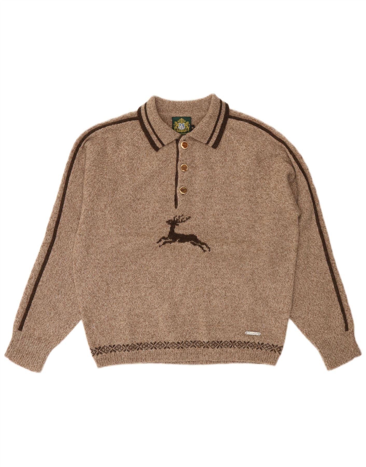HAMMERSCHMID Jersey con cuello tipo polo gráfico para hombre marrón medio moteado