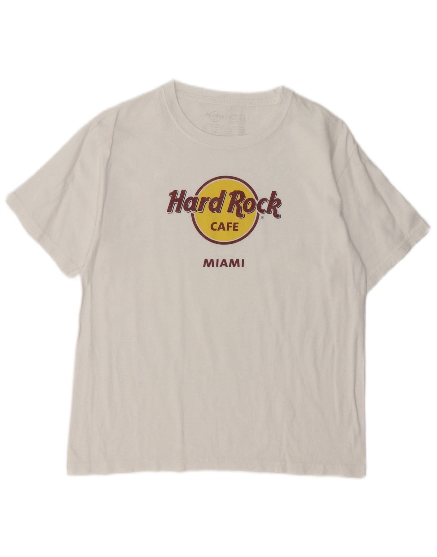 HARD ROCK CAFE Camiseta gráfica Miami para mujer Top UK 12 Algodón blanco mediano