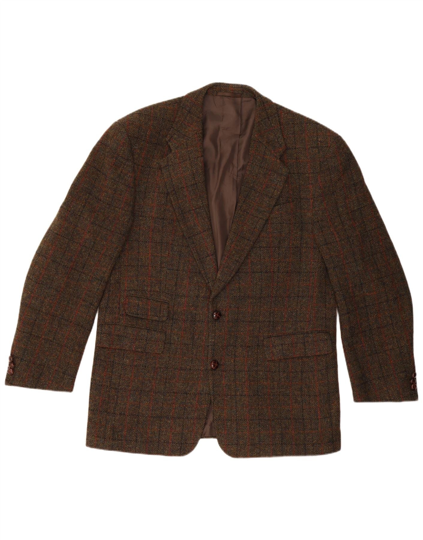 HARRIS TWEED Chaqueta tipo blazer de 2 botones para hombre IT 54 2XL Marrón a cuadros Lana nueva