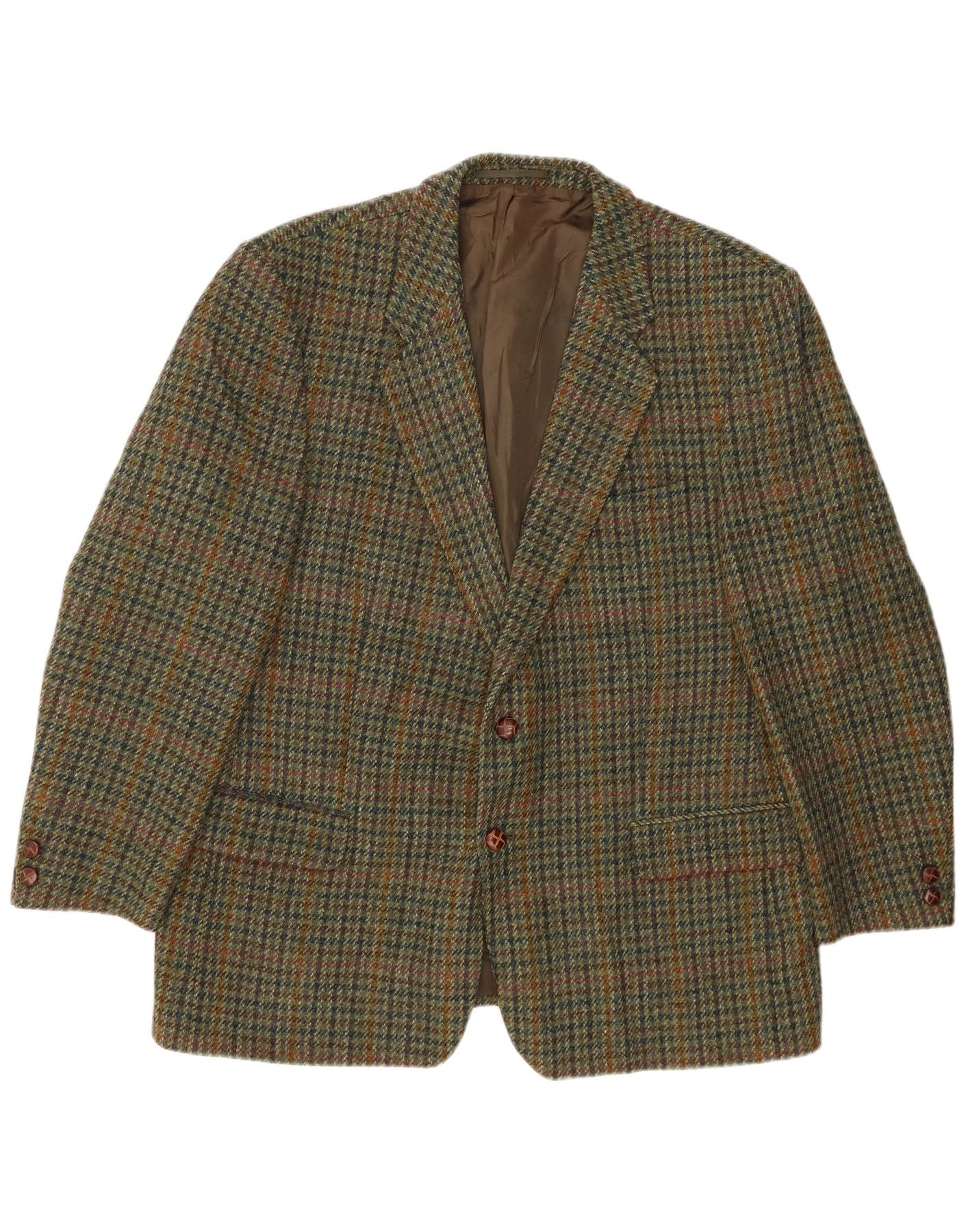 HARRIS TWEED Chaqueta tipo blazer de 2 botones para hombre UK 40 Large Khaki Houndstooth
