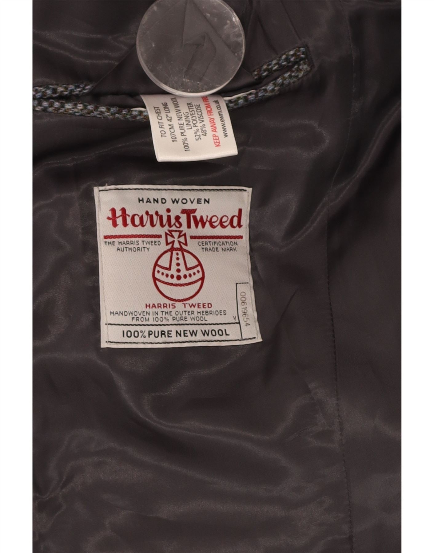 - AI Description: This Harris Tweed mens 2 Piece Suit is crafted from 100 percent Pure New Wool tweed. Its grey flecked weave offers a rich, textured finish. The collared jacket features a classic two button front and long sleeves. It is fully lined for comfort and structure. The trousers complete the regular fit silhouette. Functional pockets add practicality. This suit embodies timeless British style.