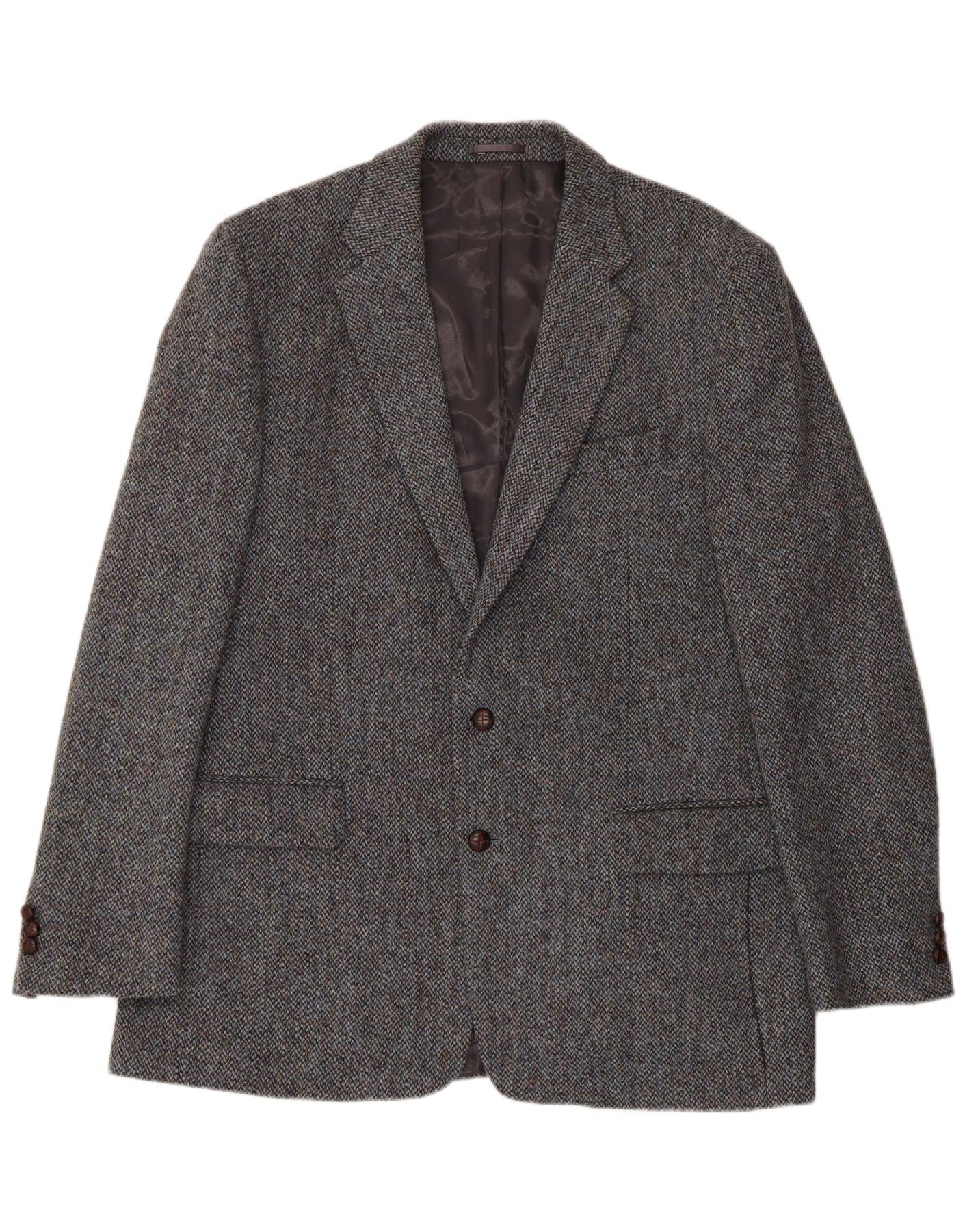 HARRIS TWEED Mens 2 Button Blazer Jacket UK 42 XL Grey Wool