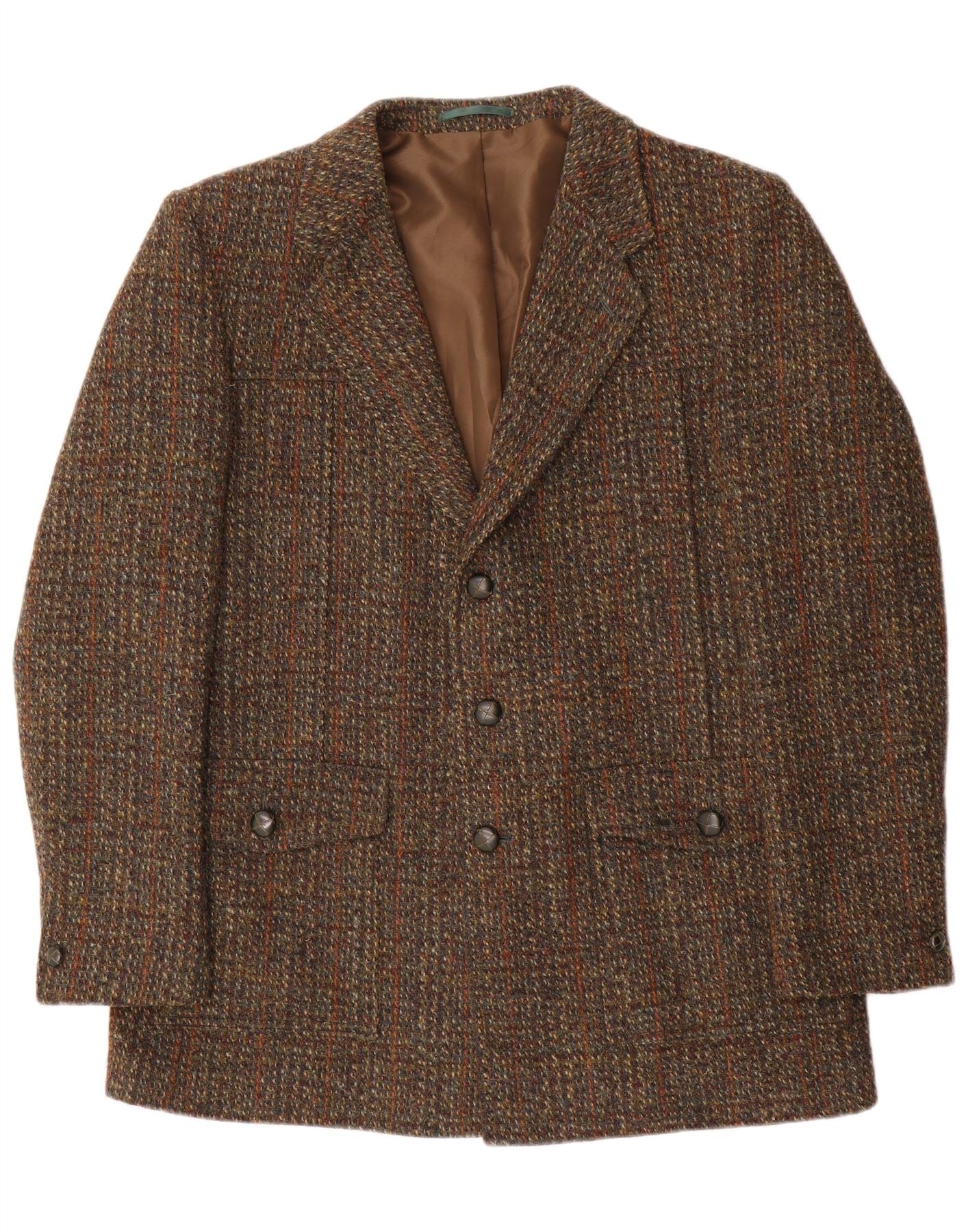 Harris Tweed Chaqueta tipo blazer de 3 botones para hombre IT 41 Lana a cuadros marrón grande