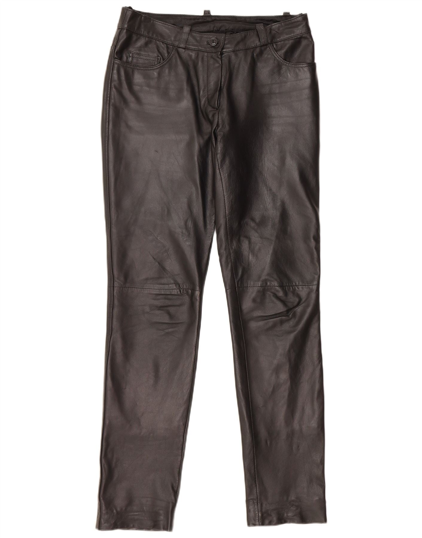 HEINE Pantalones de cuero delgados para mujer UK 12 Medium W30 L31 Cuero negro